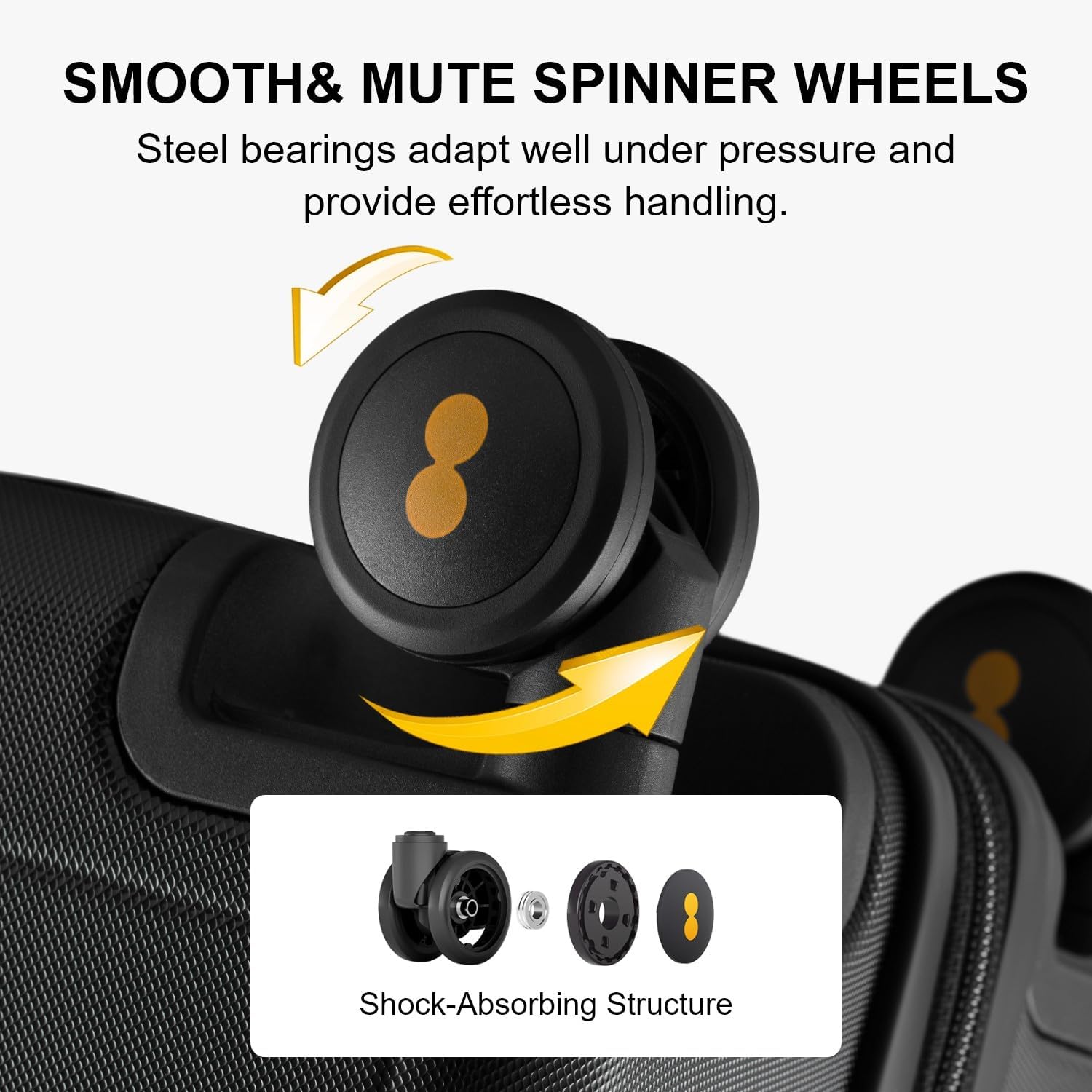 - More Effortless Traveling: This suitcase equipped with 8 silent universal spinner wheels and aluminum telescoping ergonomic handle with 4 levels for effortless control and maneuverability; Equipped with top and side easy grab handles; Bumper feet on side for protecting the case