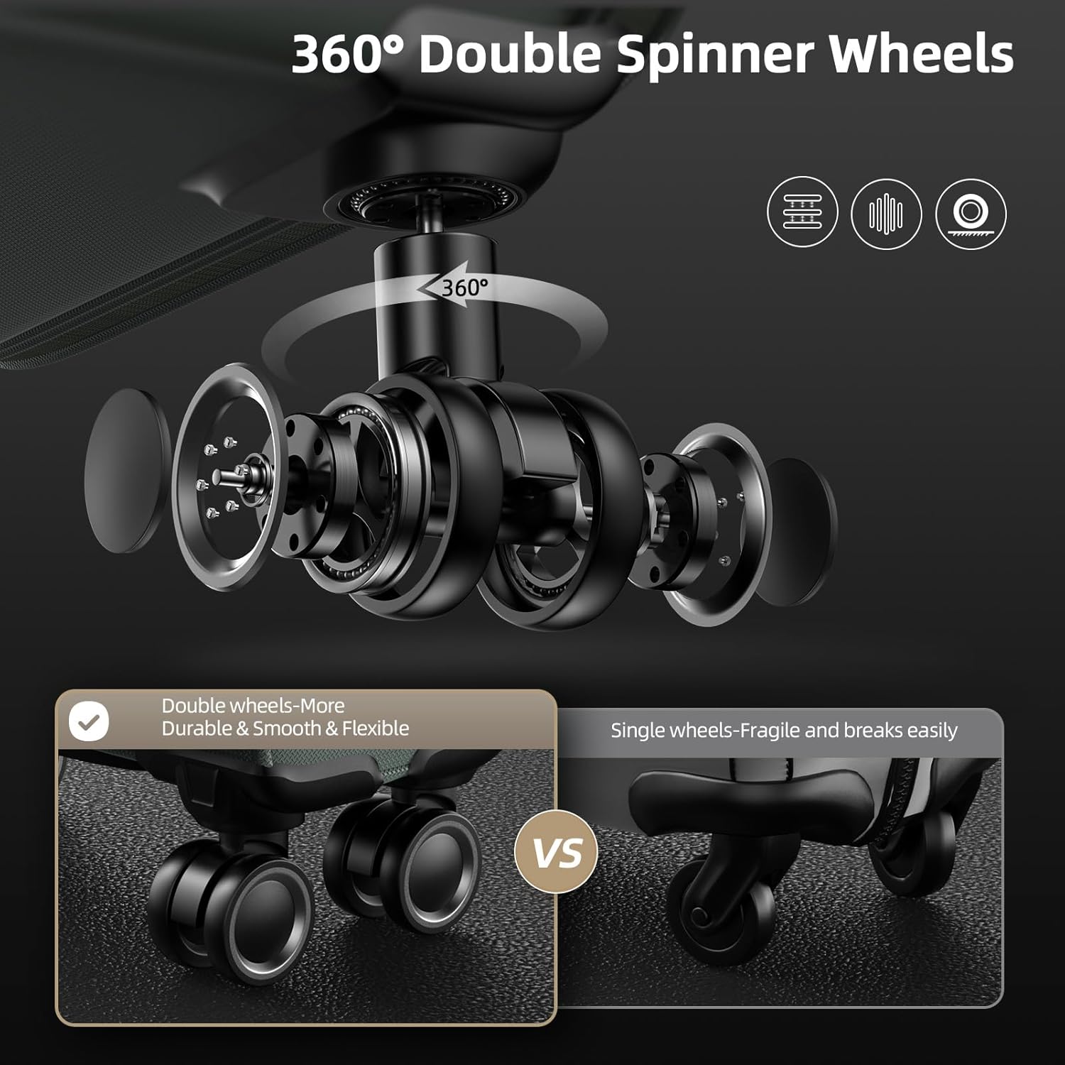 - 360° Silent Double-Row Spinner Wheels: With four 360-degree rotating wheels, the Softside Luggage Sets can rotate silently and smoothly, making it easy to move. All parts roll upright, so there is no weight on the arms and travel is easy.
