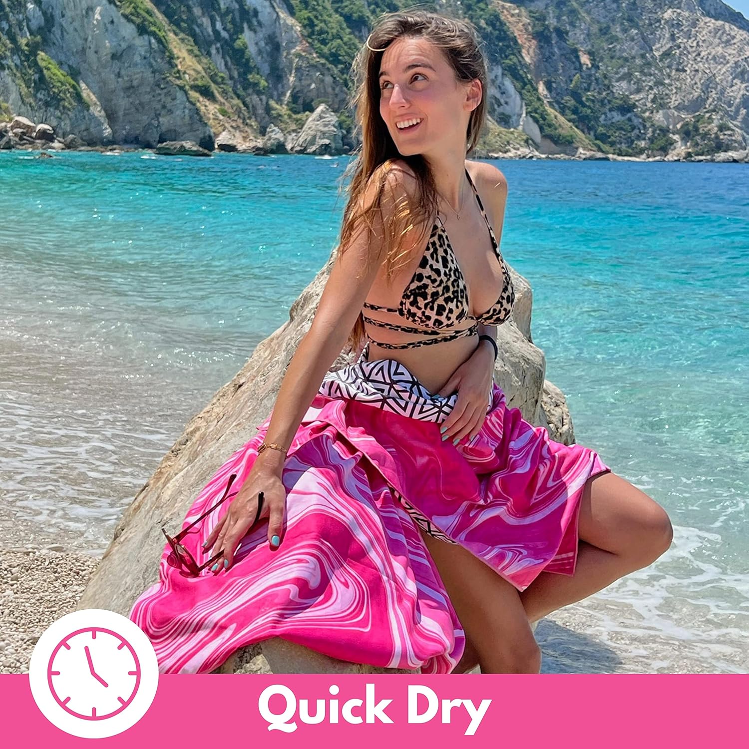 - Own the beach with our stunning 2 sided prints. Microfiber is a thin, ultra absorbent material. Super convenient to pack and carry. Maximize space in your luggage and closet with these compact and lightweight travel towels