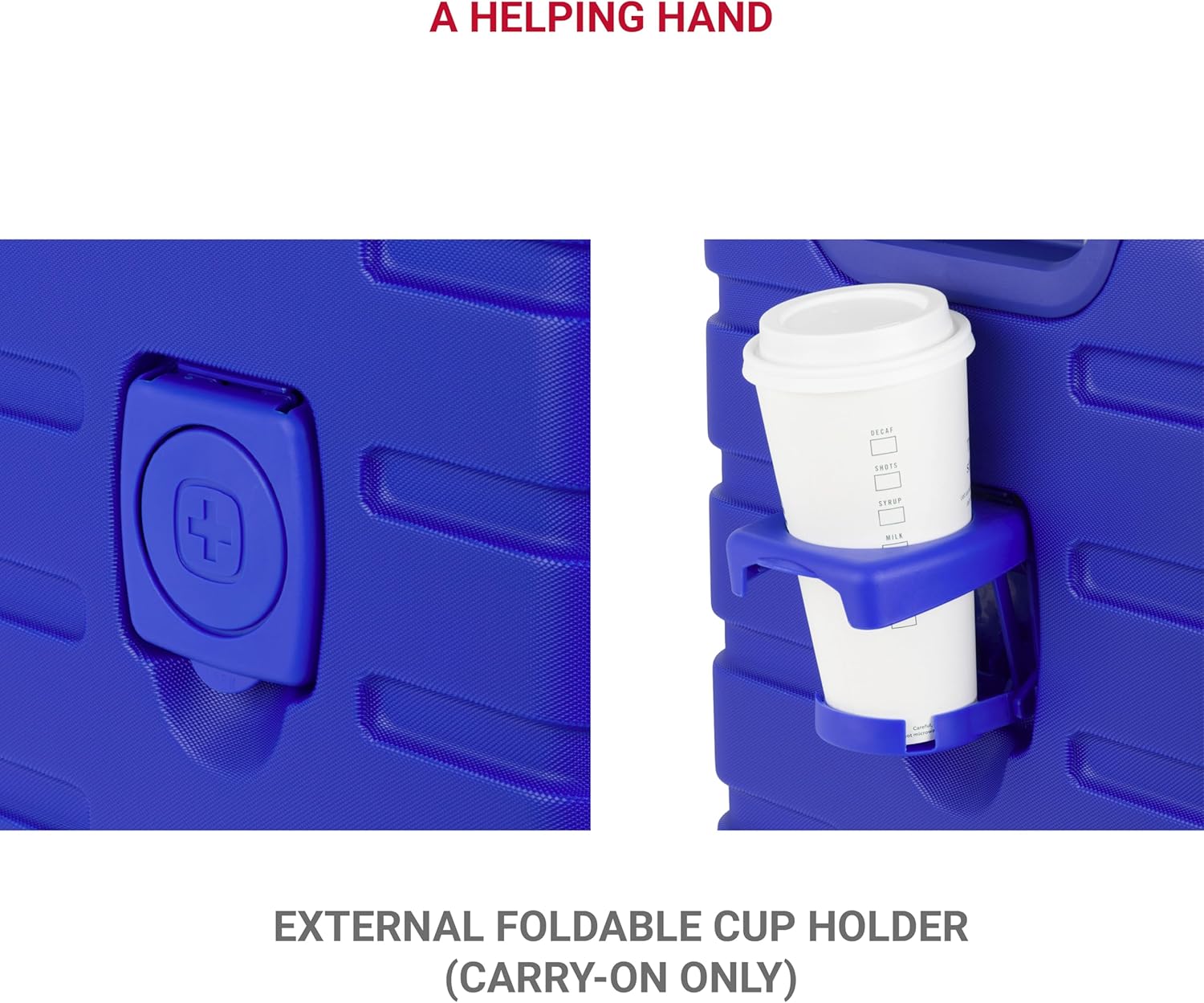 - Four 360-Degree Multi-Directional Spinner Wheels: Built with maximum maneuverability in mind, so you can navigate busy airports and small spaces with ease; the unique, patented built-in cupholder is an extra helping hand on the way