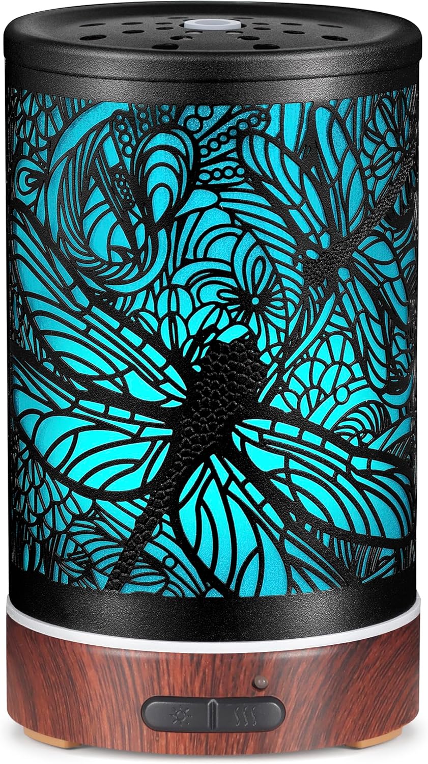 Essential Oils Diffuser,Aromatherapy Diffuser,Birthday for Women Mom Grandma,Metal Cool Mist Humidifier with 7 Colors Lights Waterless Auto Off Air Diffusers (Dragonfly)