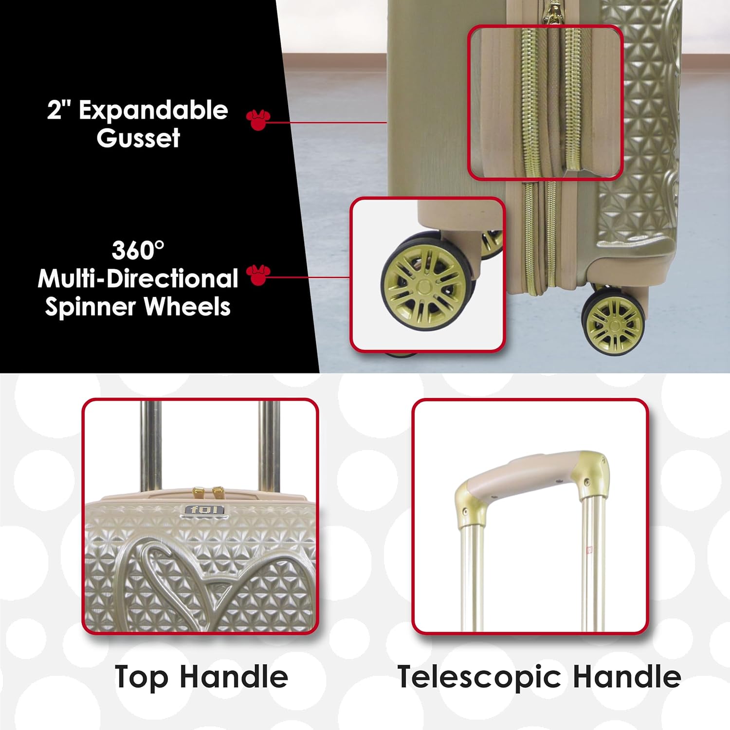 FUL Disney Carry On Luggage, Textured Hardshell Rolling Suitcase with Spinner Wheels, Minnie Mouse-Gold, 22 Inch