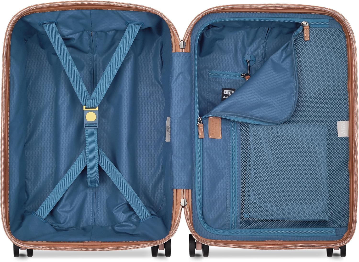 - Dual Density, double-spinner wheels assure a stable base with multi-directional rolling with zero weight on your hand for easy travel; USB port provides trouble-free connection to USB devices for convenient charging (Charger not included)