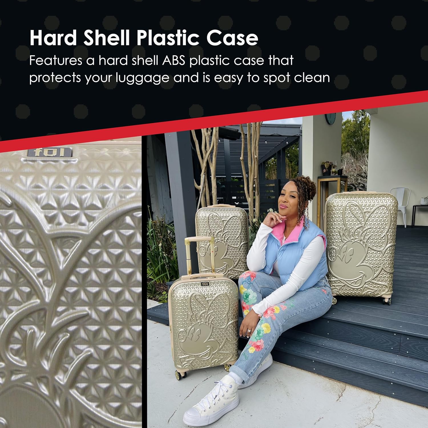 FUL Disney Rolling Luggage, Textured Hardshell Suitcase with Wheels, Minnie Mouse-Taupe, 3 Piece Set