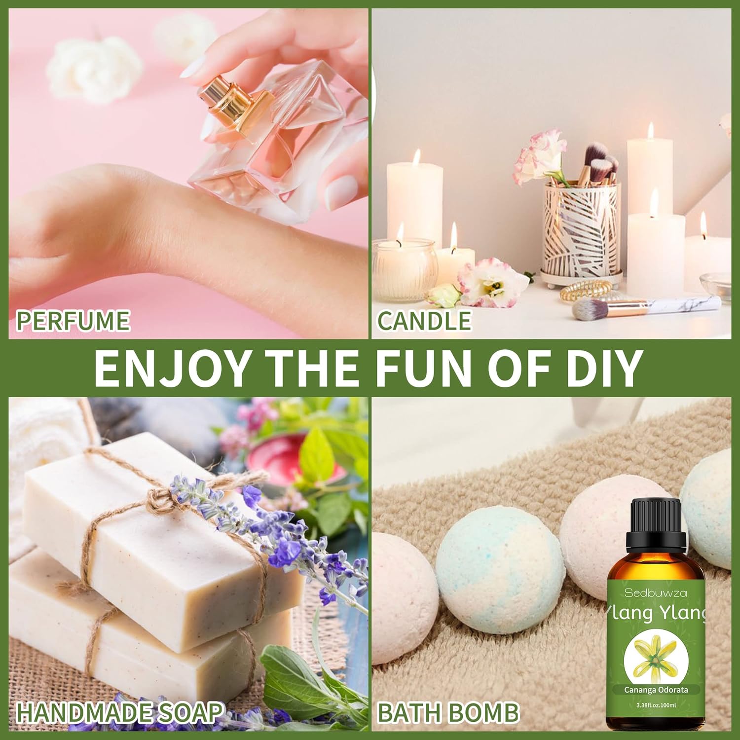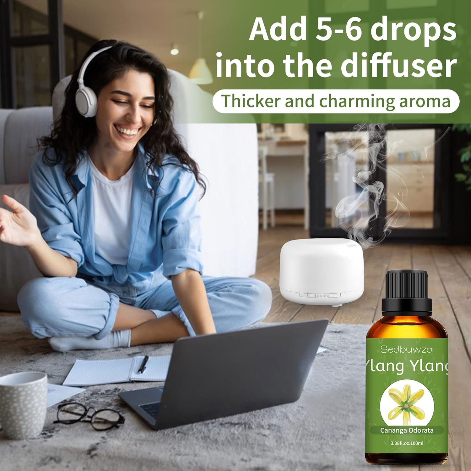 Sedbuwza Ylang Ylang Essential Oil, Ylang Ylang Oil 100% Pure Natural Ylang Ylang Fragrance Oil for Massage Diffuser Humidifier Candle Soap Aromatherapy Making - 3.38 OZ