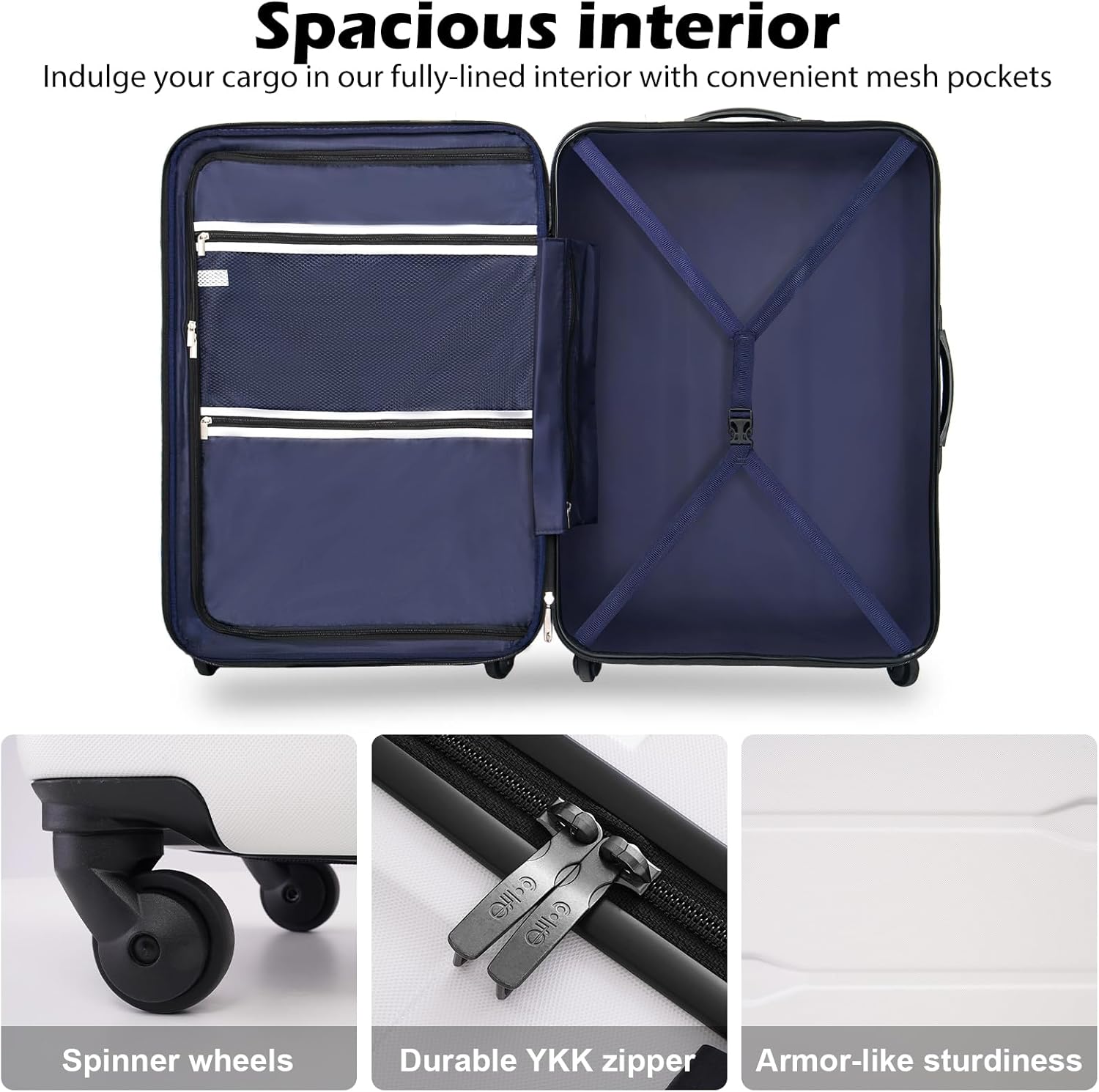 Coolife Luggage PC+ABS Hardshell Suitcase with TSA Lock, Spinner Checked Lightweight (White, 24in)