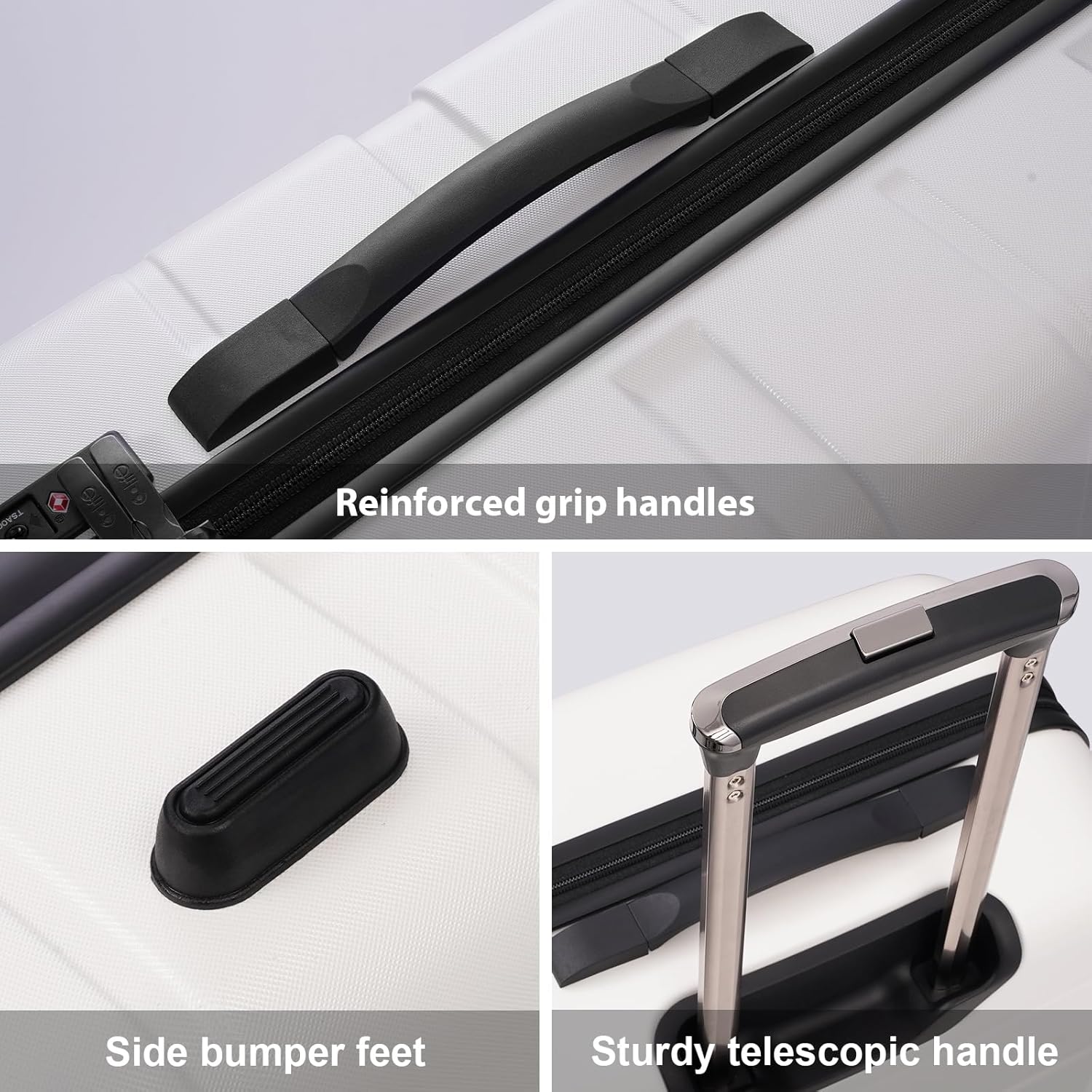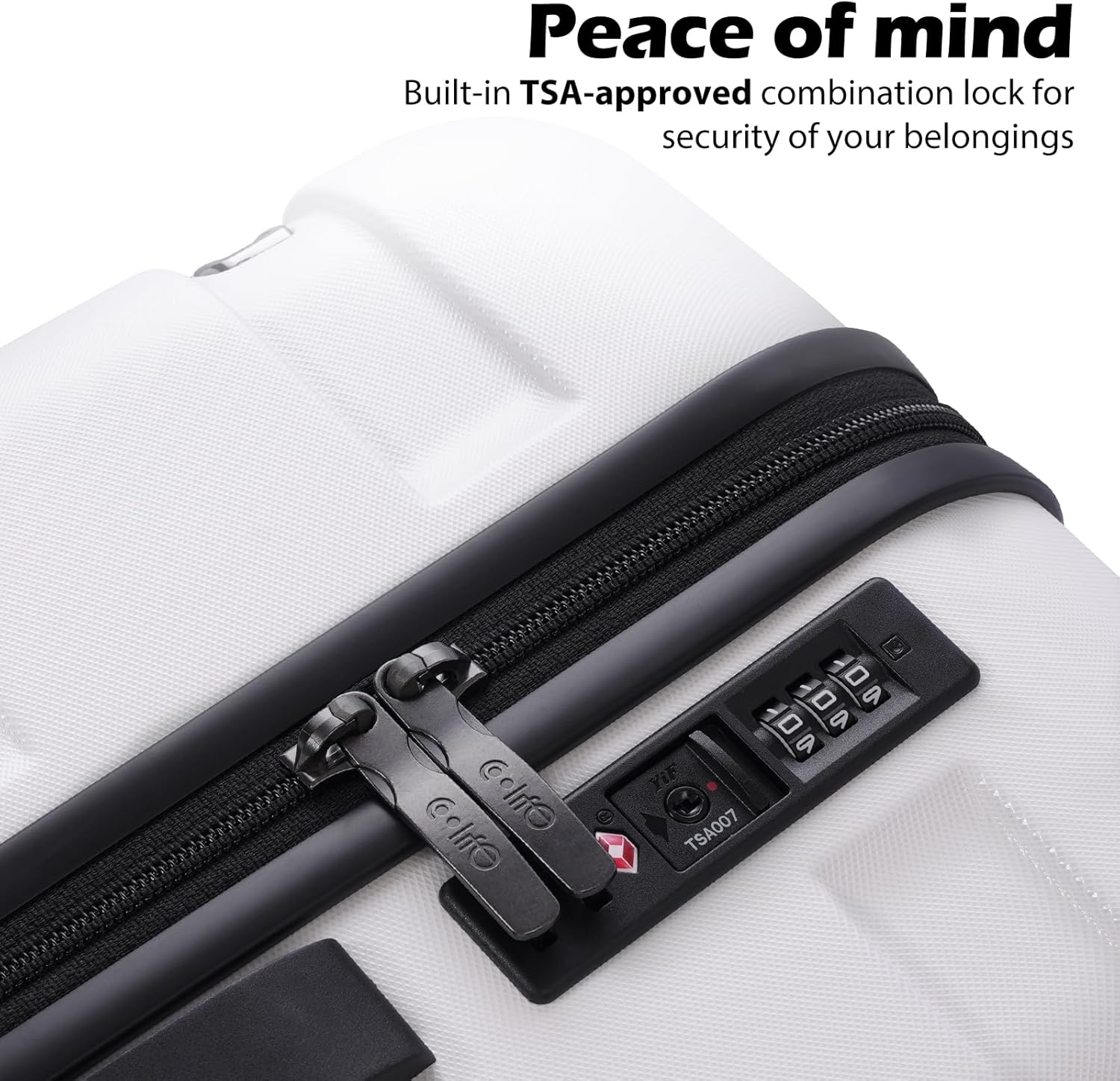Coolife Luggage PC+ABS Hardshell Suitcase with TSA Lock, Spinner Carry On Lightweight (White, 20in)