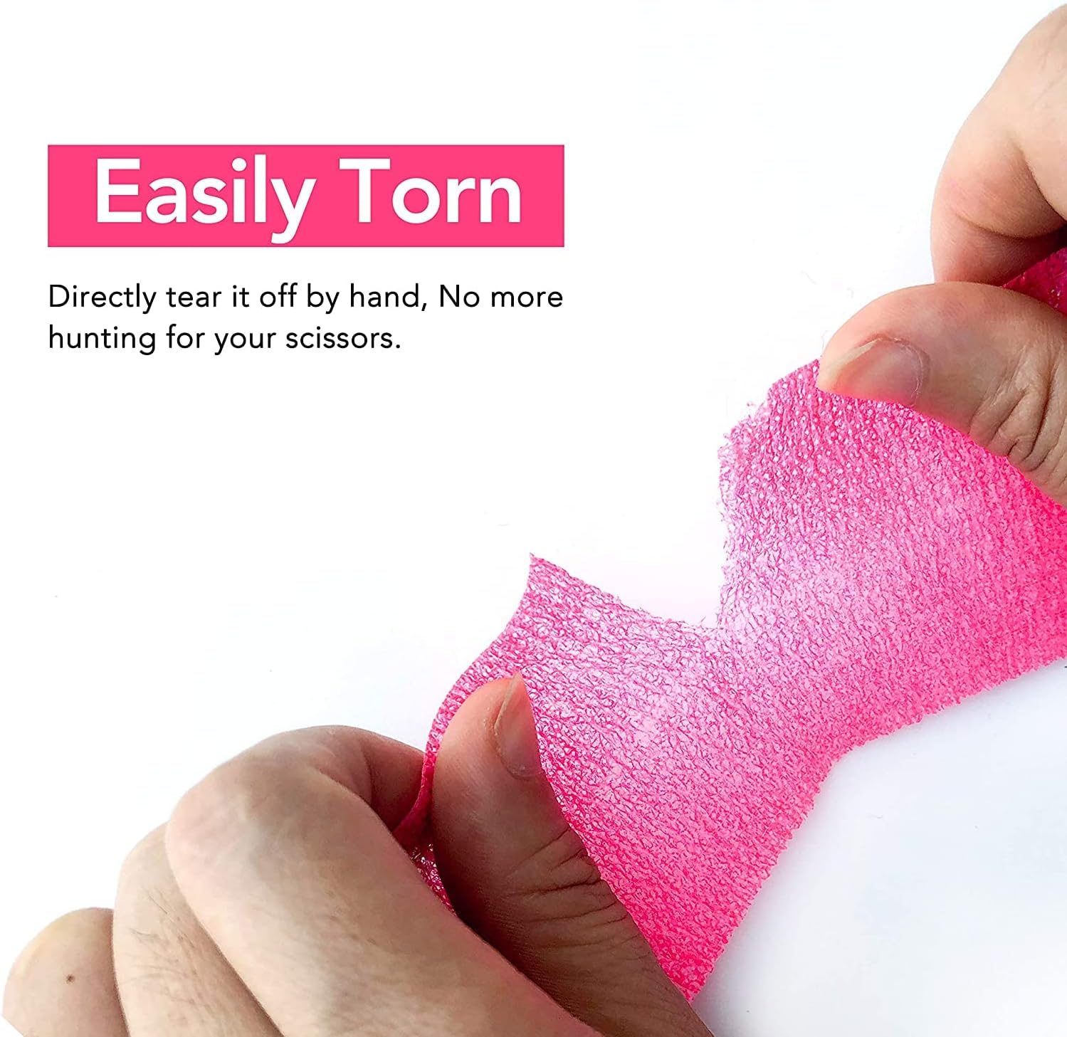 - Self-Adhesive: Coheres to itself but doesn’t adhere well to skin, hair or other materials that makes it an ideal solution for any taping job.