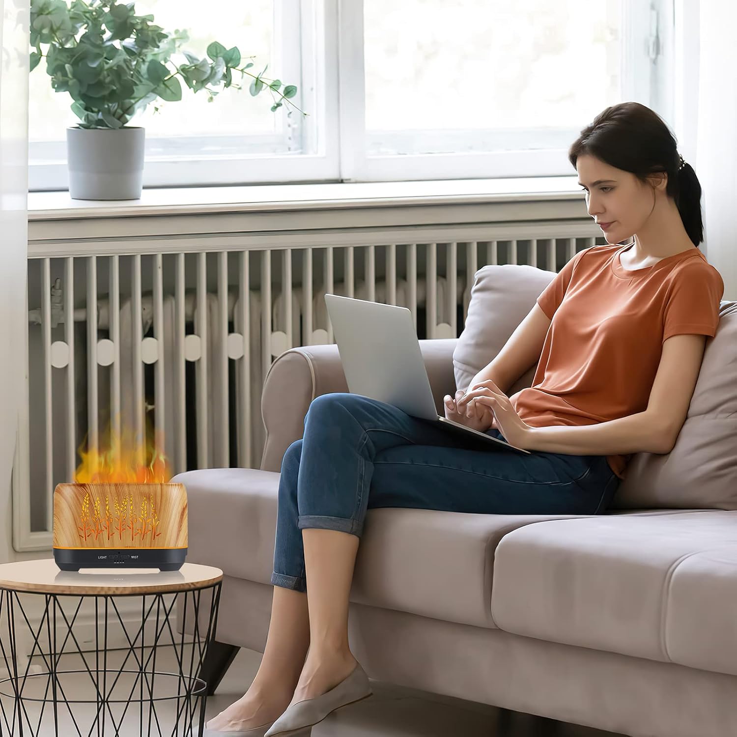 - Work Modes: Oil diffuser with 3 kinds of lights and 3 kinds of atomization mode, respectively strong/weak/intermittent, can be freely switched. 4 timing modes, respectively working 30S/2H/4H/ON diffusion, to meet diversified needs. The diffuser has a 240ML water tank, a filling of water can be used continuously for more than 12 hours, very convenient. Through light and fog, combined with LED lights to produce a realistic flame effect to create a warm and romantic atmosphere.