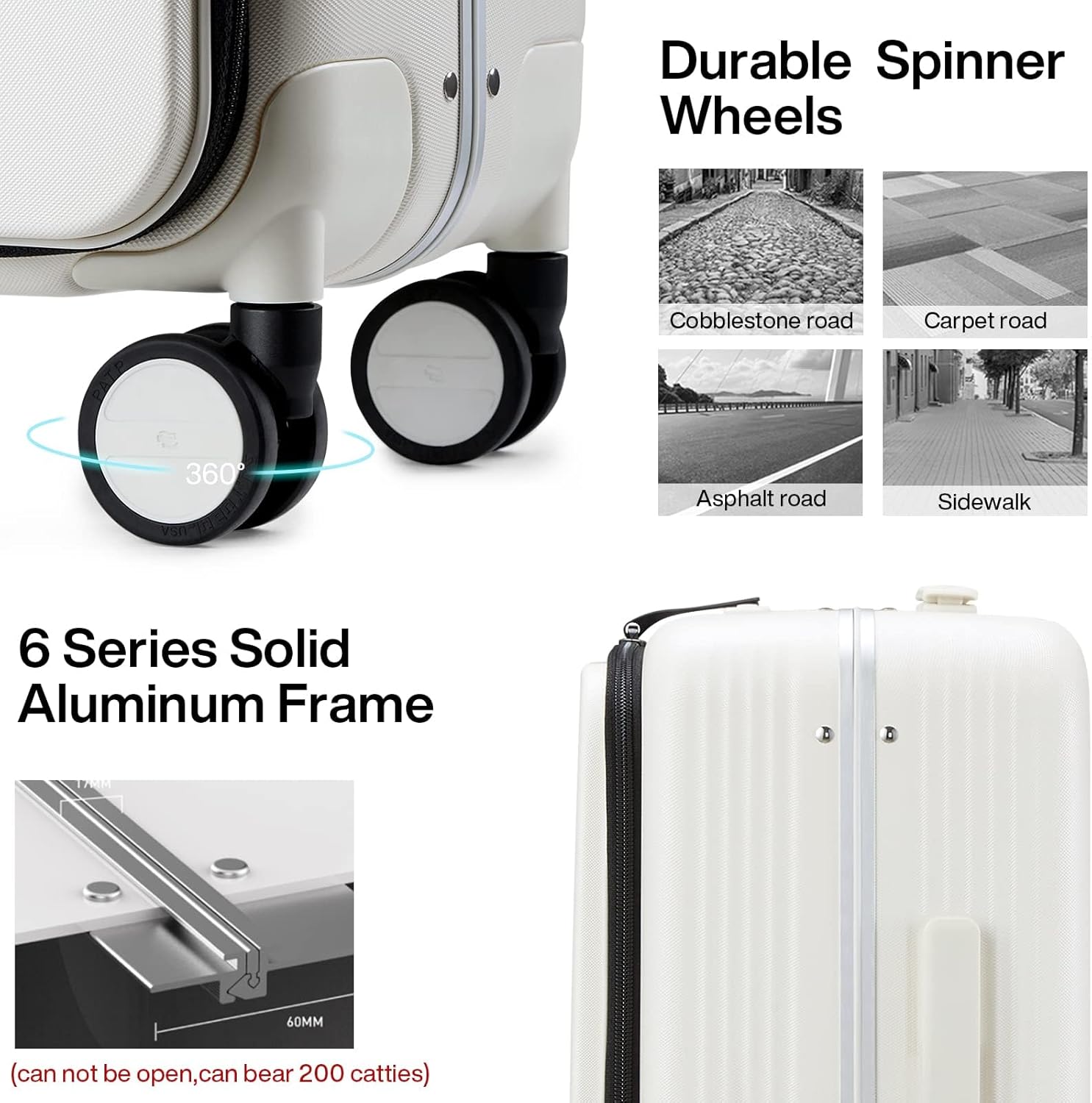 Hanke Grace Hard Shell Suitcases with Wheels,20 Inch Carry On Luggage Airline Approved with Aluminum Frame, Travel suitcase with Front Pocket Travel Luggage for Short Business Trips, Smoke White.