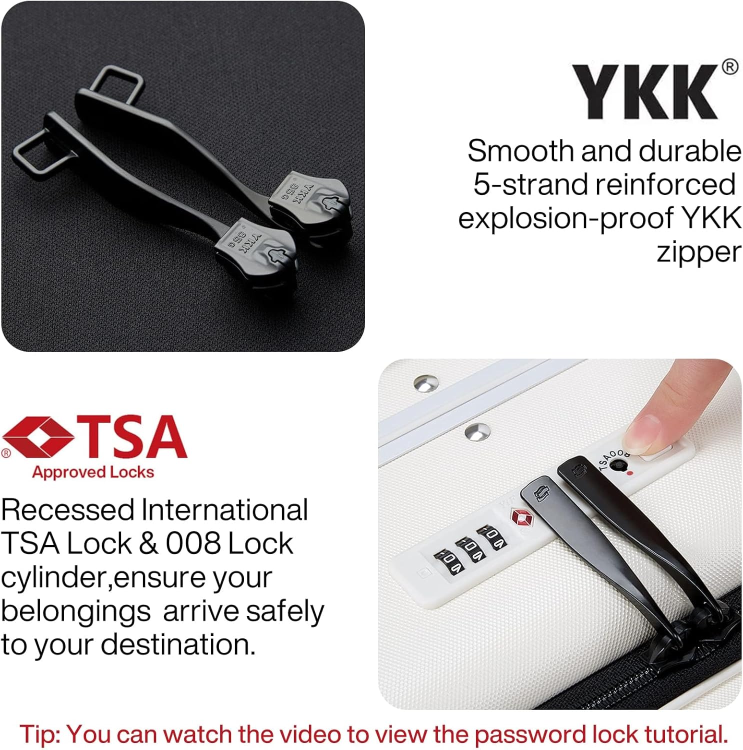 - 【Spinner wheels and Travel locks】The hard sided luggage with spinner wheels with rotating wheels that are very durable, quiet, and have strong load-bearing capacity. It can be easily operated on different roads such as cobblestone and carpet roads;The travel approved carry on luggage can protect the security of electronic products and undergo non-destructive safety checks, making it more convenient and secure.