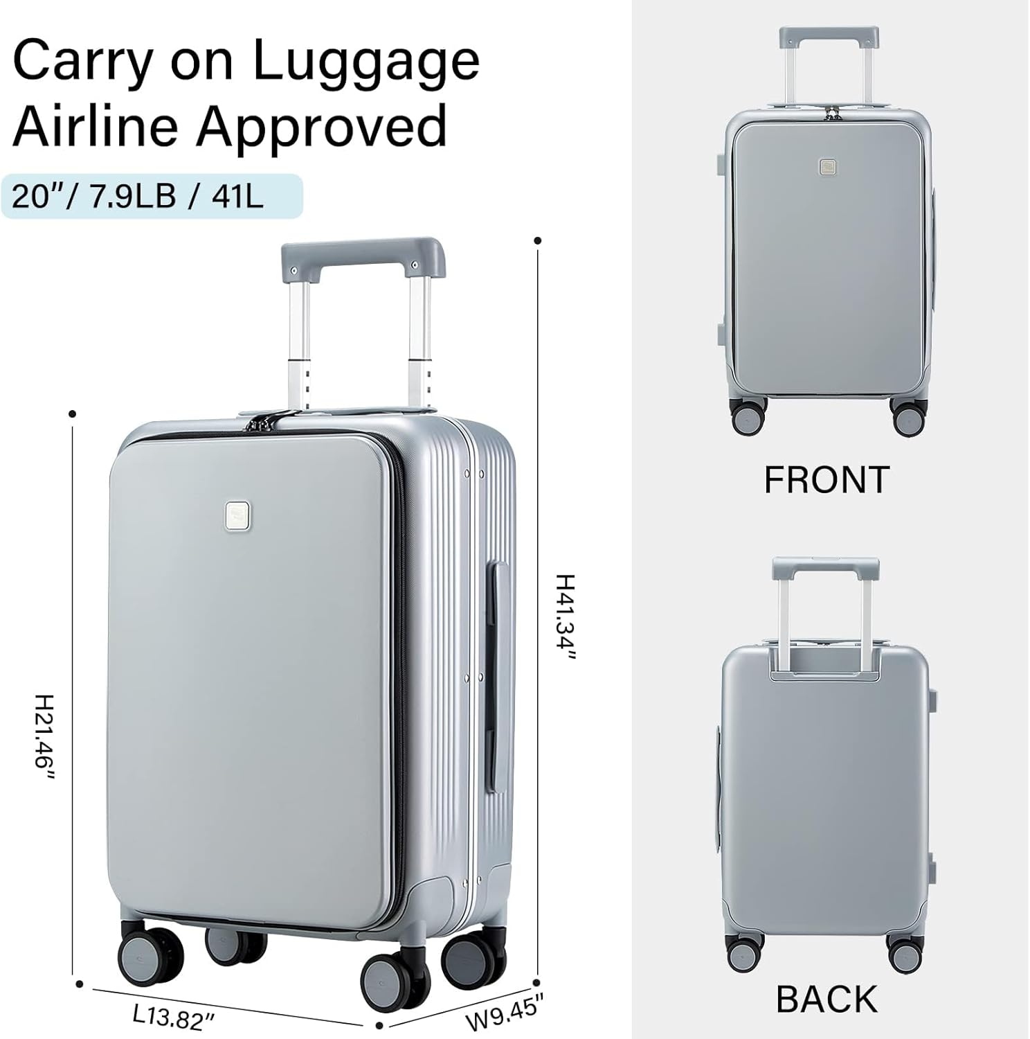 Hanke Grace Hard Shell Suitcases with Wheels,20 Inch Carry On Luggage Airline Approved with Aluminum Frame, Travel suitcase with Front Pocket Travel Luggage for Short Business Trips, Grey.