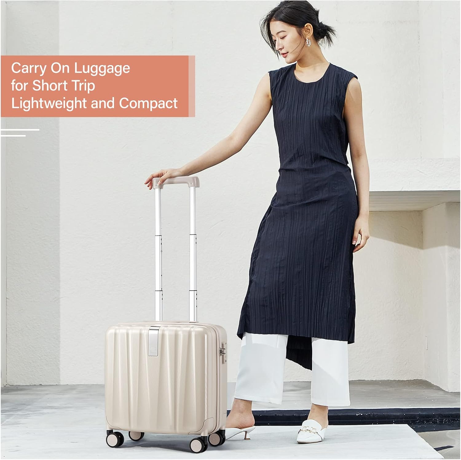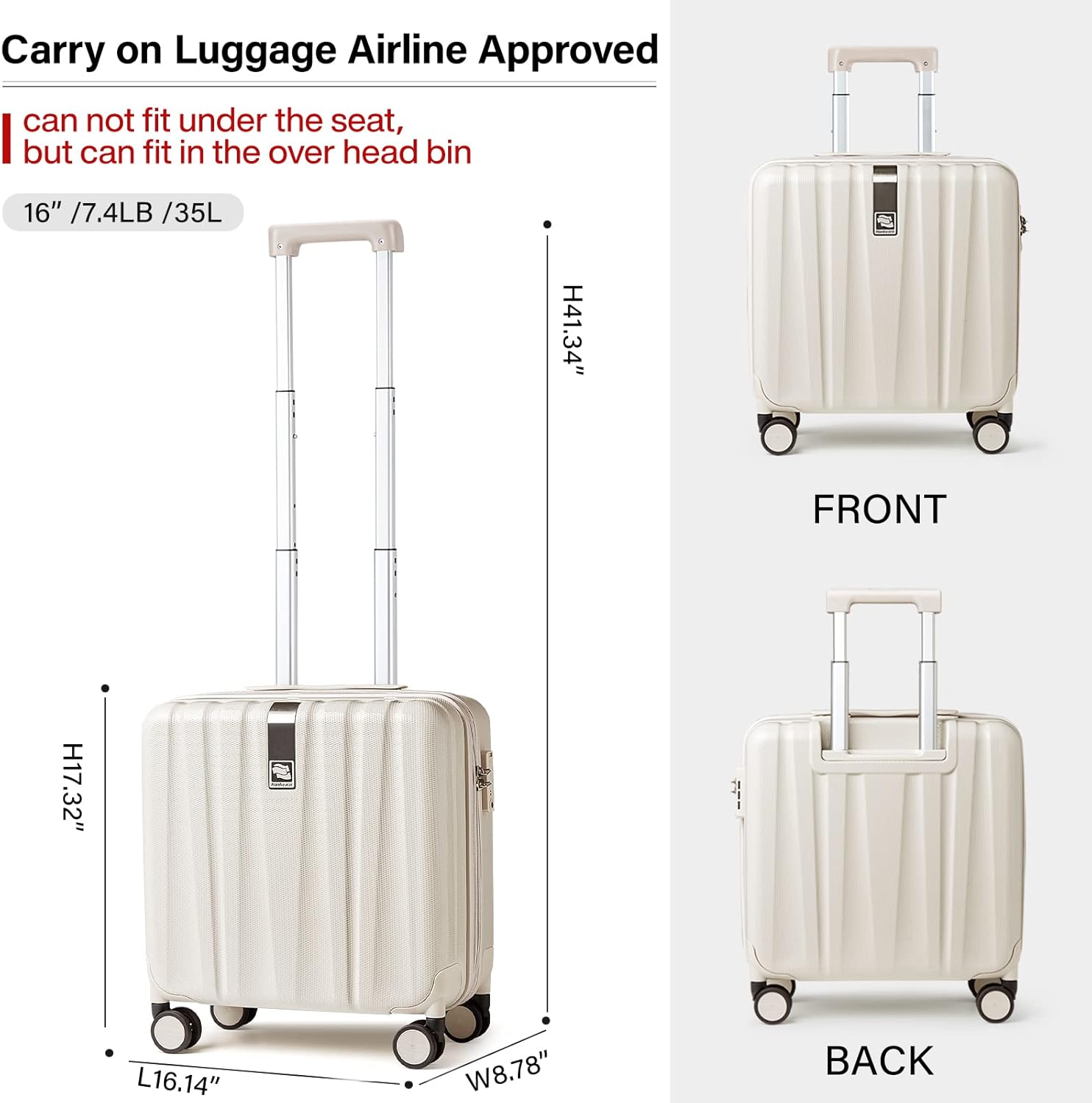 Hanke 16 Inch Underseat Carry on Luggage with Wheels Small Hard Shell Suitcases for Weekender,Travel Approved Lightweight Travel Luggage Suitcase for Womem Men,Christmas Gifts for Birthday-Ivory White