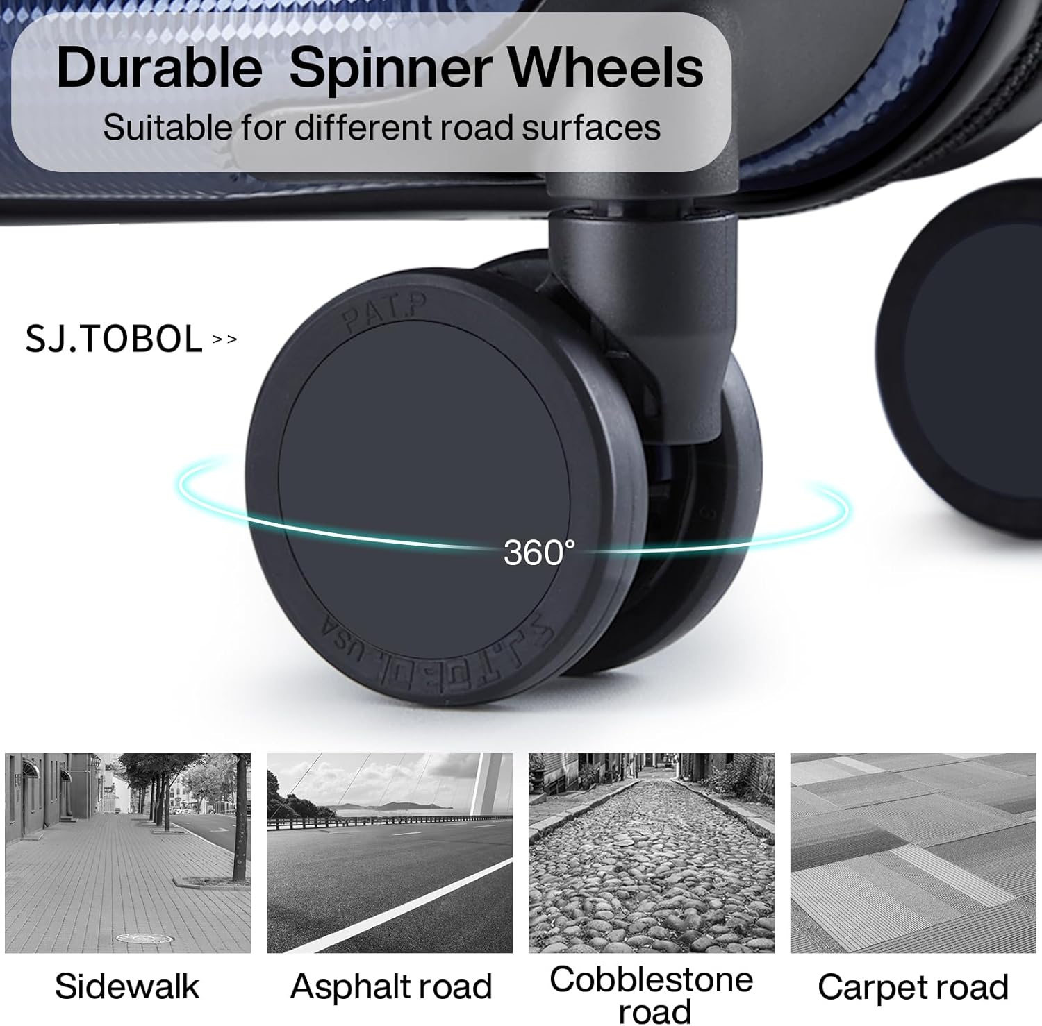 - 【High Quality Accessories】SJ . TOBOL durable spinner wheels,It is composed of precision shaft center and thickened TPE wheel skin, which is very wear-resistant,quieter and has strong bearing capacity, It is applicable to different roads such as cobblestone road and carpet road. Smooth and durable 5-strand reinforced explosion-proof zipper reverse coil prevents burst zipper. Travel-approved combination lock is safe and convenient. Ergonomics telescopic handle with multi-steps adjustment.