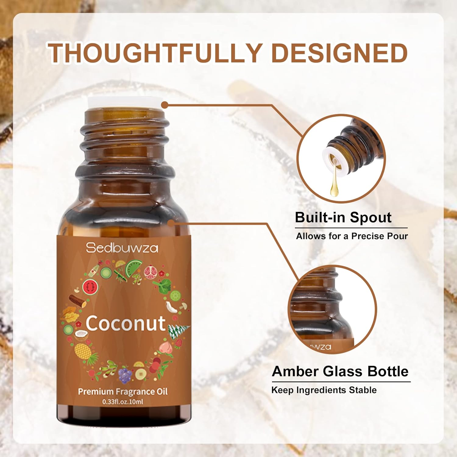 Sedbuwza Coconut Essential Oil, Pure Organic Coconut Fragrance Oil for Diffuser, Humidifier, Soap, Candle, Perfume