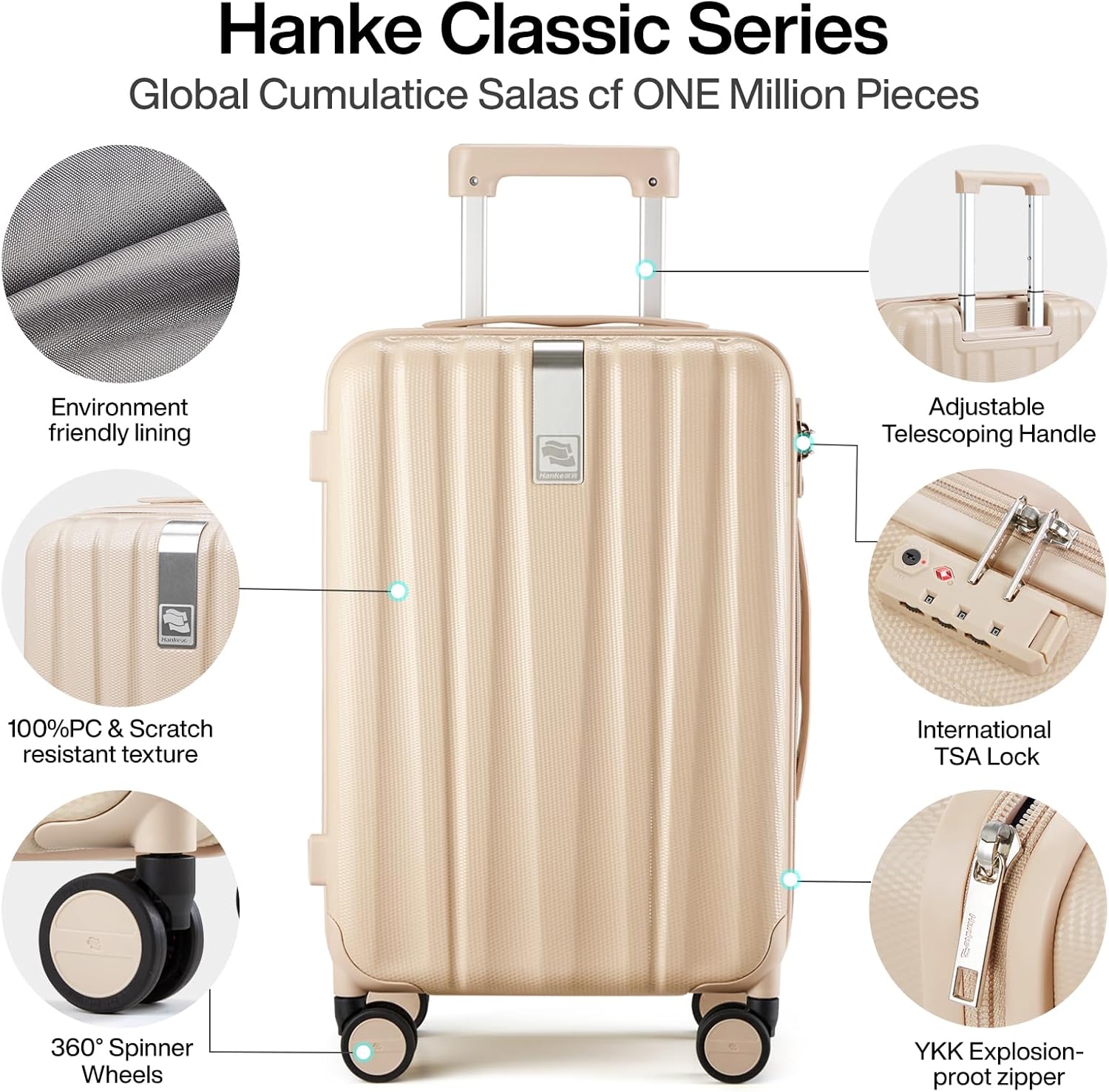 Hanke 20 Inch Carry On Luggage 22x14x9 Airline Approved Lightweight PC Hard Shell Suitcases with Wheels Travel Luggage Rolling Suitcase Travel Luggage Bag for Weekender(Cuba Sand)