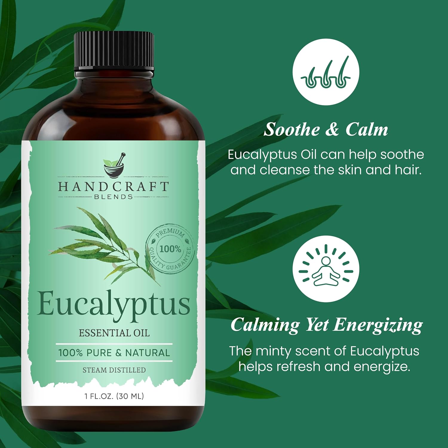 Handcraft Blends Eucalyptus Essential Oil – 1 Fl Oz – 100% Pure and Natural – Premium Grade Essential Oil for Diffuser and Aromatherapy, Skin, Massage, Candle and Soap Making Fragrance