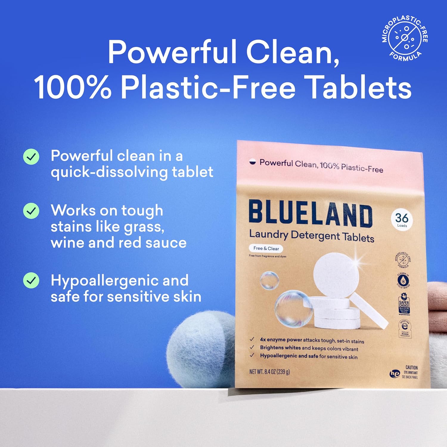 - PLASTIC-FREE, ECO-FRIENDLY LAUNDRY TABLETS. Tough on stains, gentle on the planet. Our 100% plastic-free tablet is tried, tested, and proven to lift the toughest stains—from grass and coffee to food and makeup—without any harsh chemicals. Formulated safe for family, healthier for planet, and powerfully effective so you can ditch plastic pods and sheets for a higher standard of clean. Includes a refillable Forever Tin for easy storage.