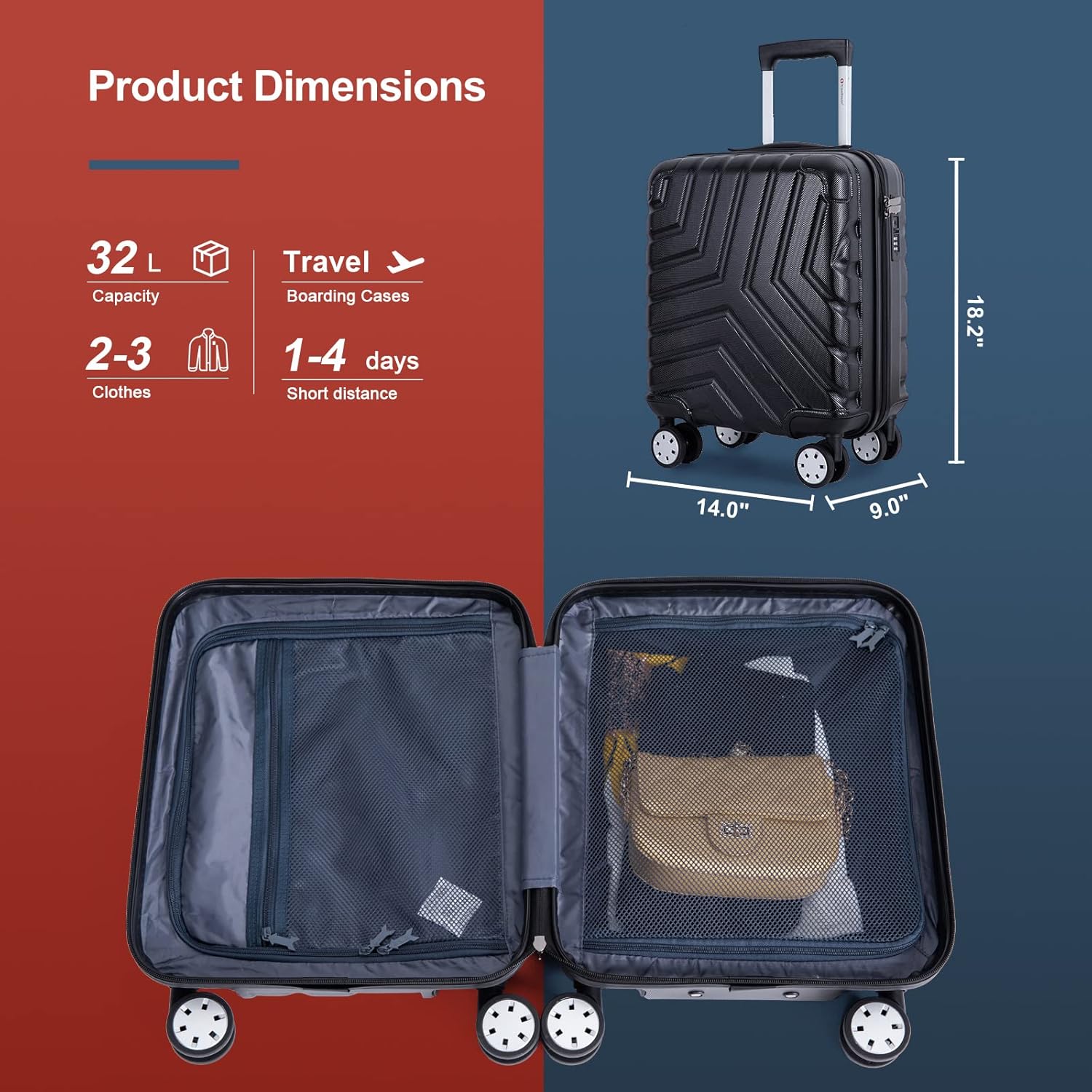 - Perfect for Short Trips: This carry-on luggage easy to carry with dimensions of W14"×D8.5"×H18.2"; Gross Weight/Net Weight: 5.95 lbs. Hardshell carry-on luggage complies with airline-approved regulations for smooth boarding and fits in the overhead bin. Note: It can not fit under the seat.