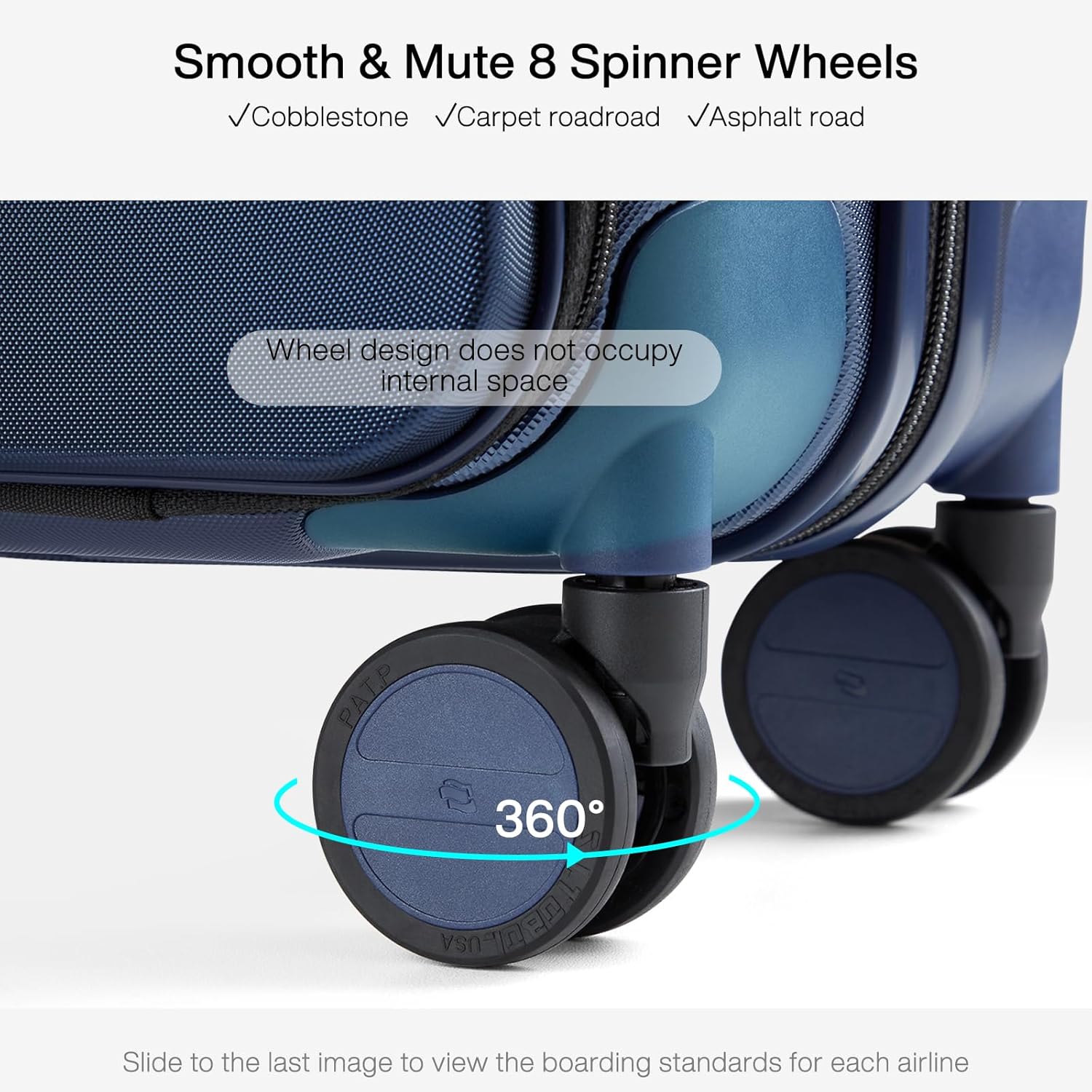 Hanke Grace Carry On Luggage with Wheels Airline Approved Hard Shell Suitcases with Front Pocket,Top Opening Luggage with TSA Lock for Short Business Travel,Dark Blue