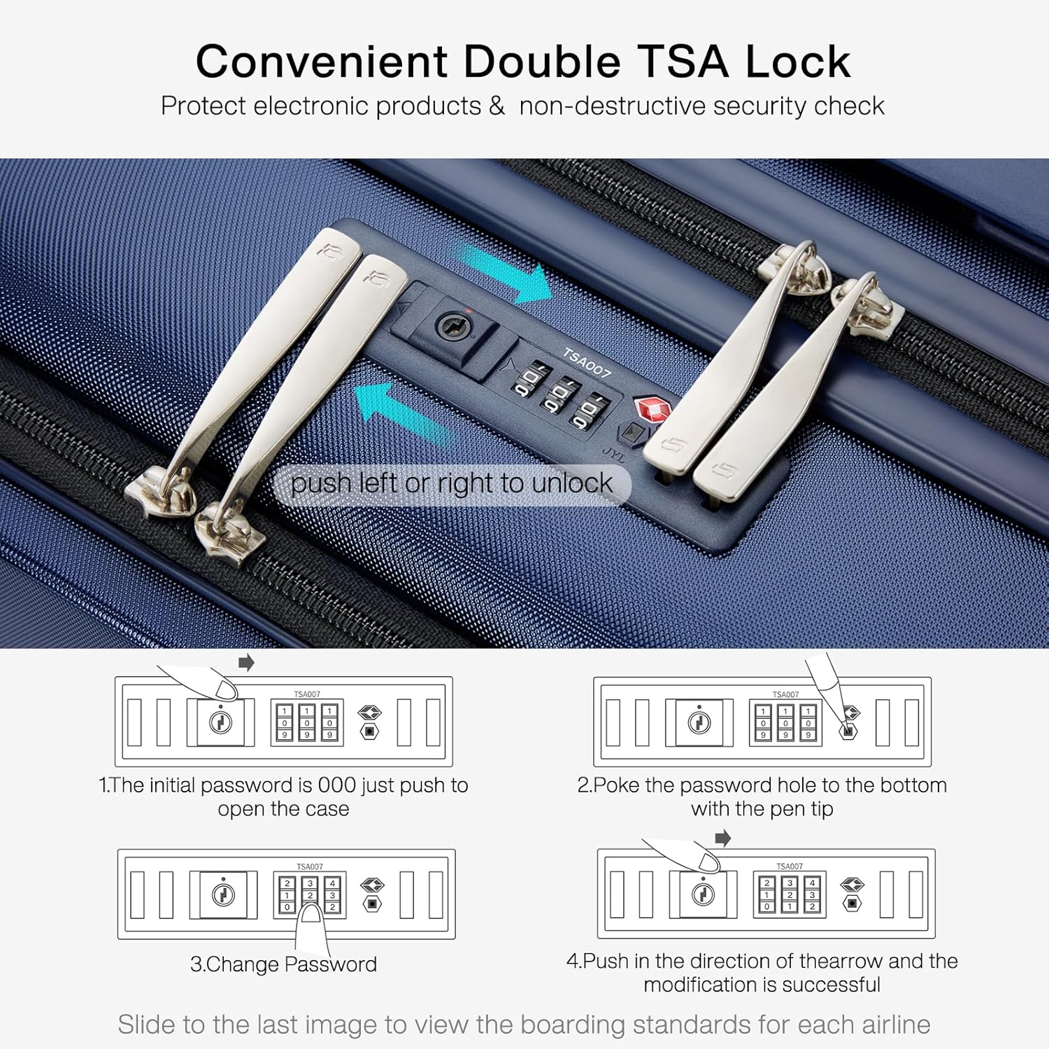- 【Travel locks and spinner wheels】The travel approved carry on luggage can protect the security of electronic products and undergo non-destructive safety checks, making it more convenient and secure; The hard sided luggage with spinner wheels with rotating wheels that are very durable, quiet, and have strong load-bearing capacity. It can be easily operated on different roads such as cobblestone and carpet roads.