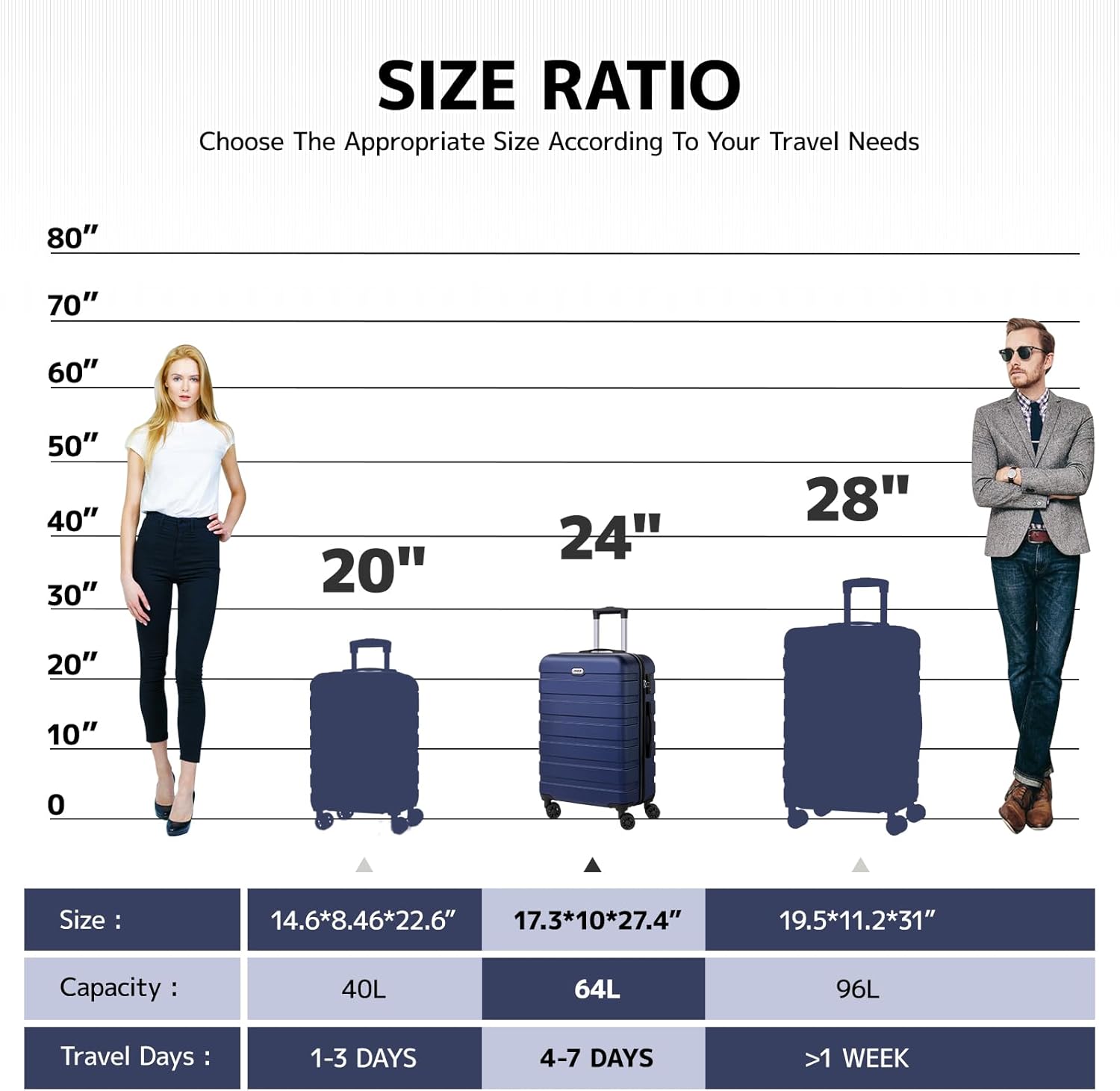 - [Checked-Medium 24 Inch] The 24-inch suitcase meets the functions of boarding, travel, and daily storage. Size: 17.3*10*27.4 inches. Capacity: 64L.