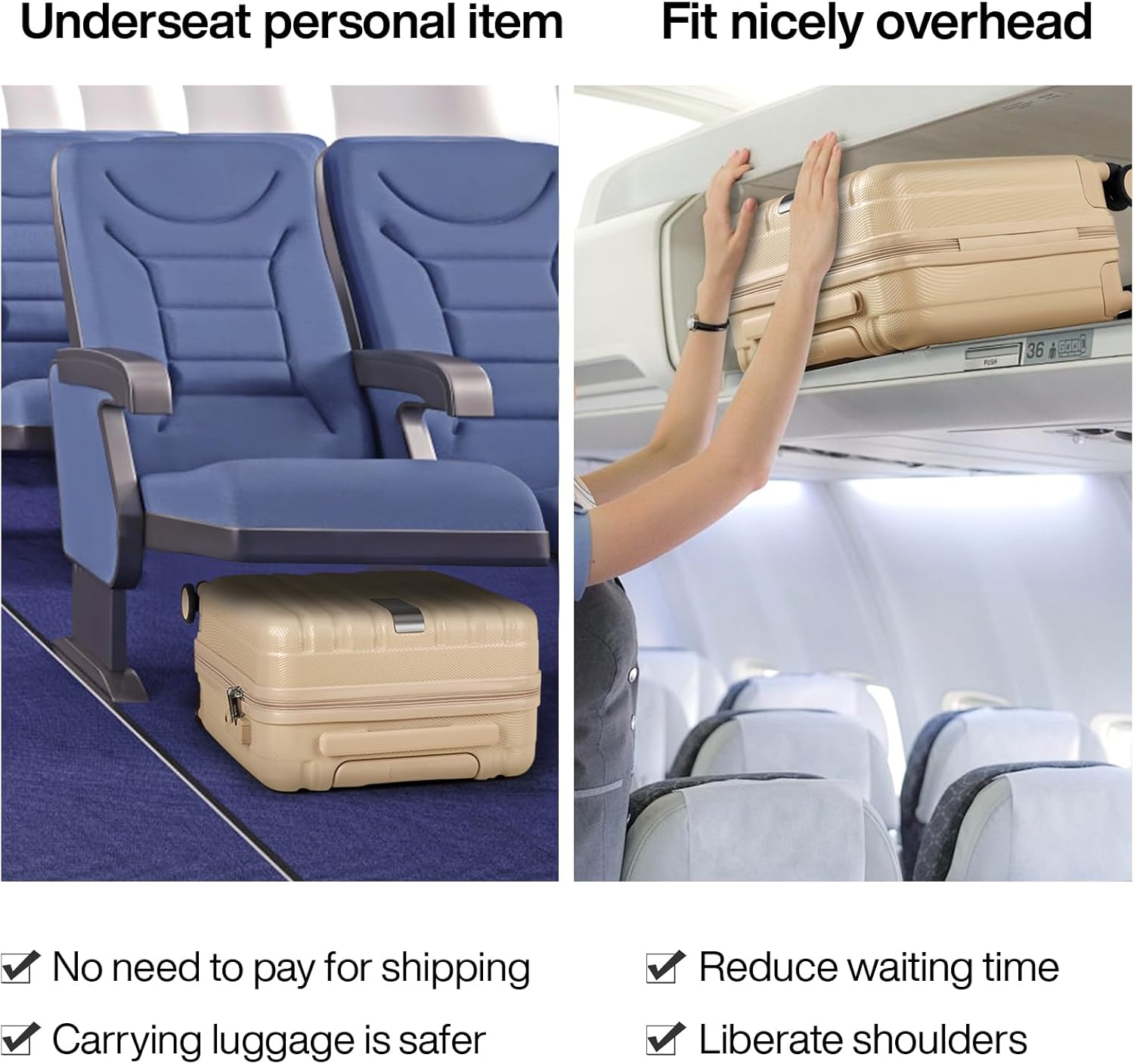 - 【Underseat Carry on Luggage】The size of the 16 inch Carry on luggage airline approved:L13.8"*W8.3"*H17.9"(Including wheels and handles),6.6LB,27.5L.Can fit under the seat and fit in the overhead bin,It can also be used as a personal item,it's a best lightweight luggage.