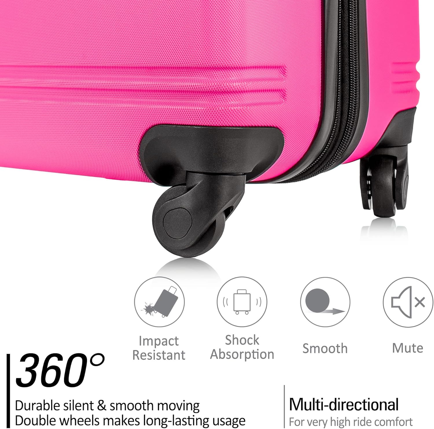Merax Luggage Sets 3 Piece Suitcase Set 20/24/28,Carry on Luggage Airline Approved,Hard Case with Spinner Wheels,Pink