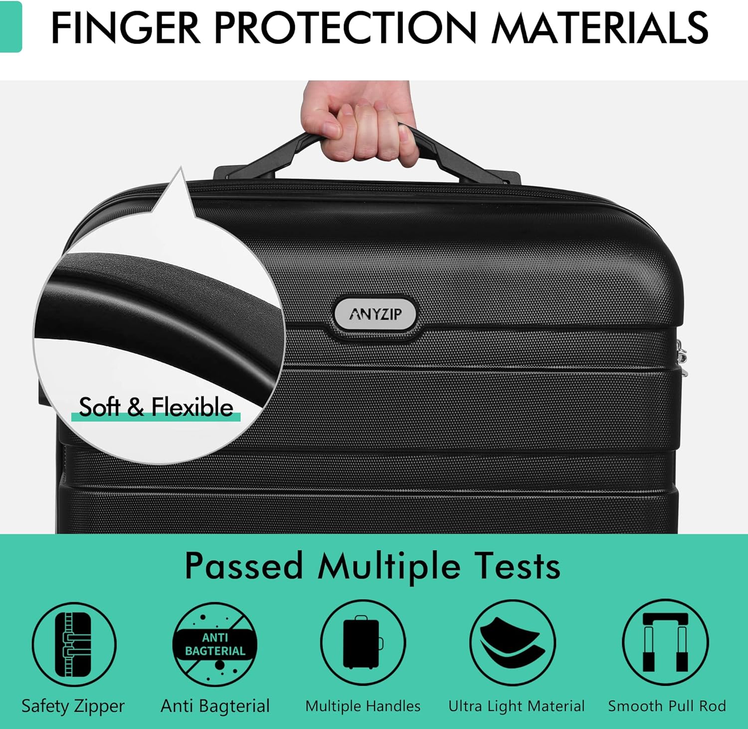 AnyZip Luggage PC ABS Hardside Lightweight Suitcase with 4 Universal Wheels TSA Lock Checked-Large 28 Inch Black