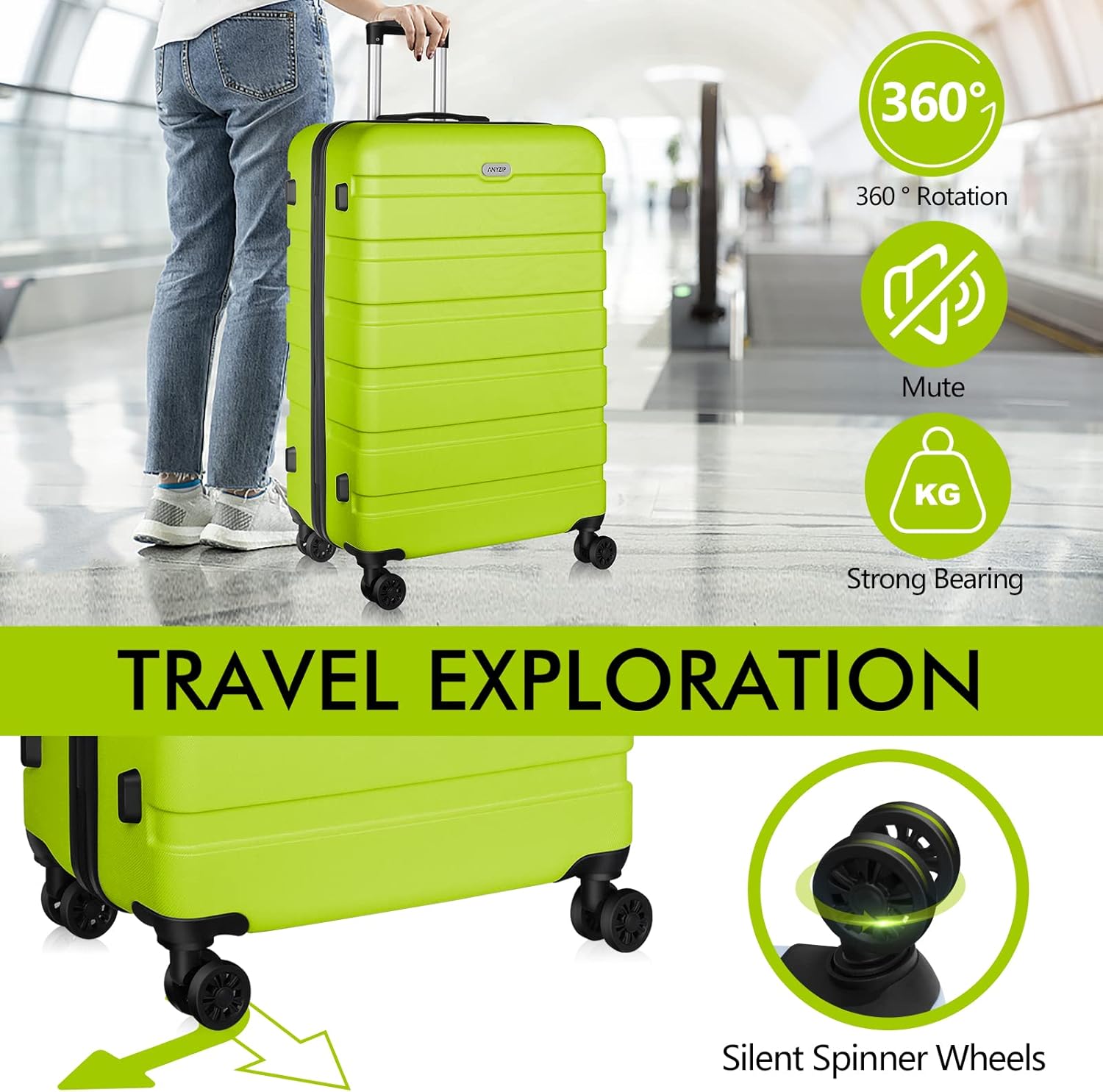 AnyZip Luggage PC ABS Hardside Lightweight Suitcase with 4 Universal Wheels TSA Lock Checked-Medium 24 Inch Apple Green