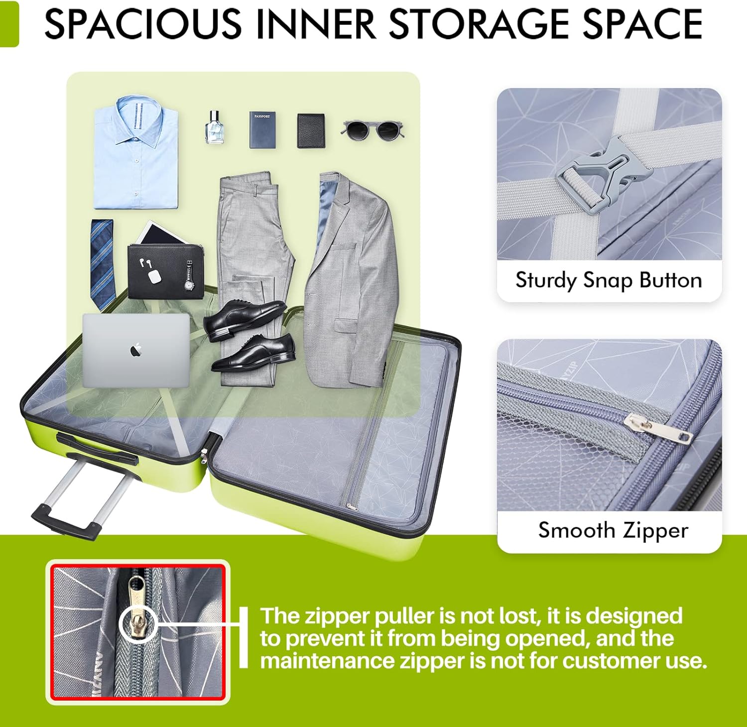 AnyZip Luggage PC ABS Hardside Lightweight Suitcase with 4 Universal Wheels TSA Lock Carry-On 20 Inch Apple Green