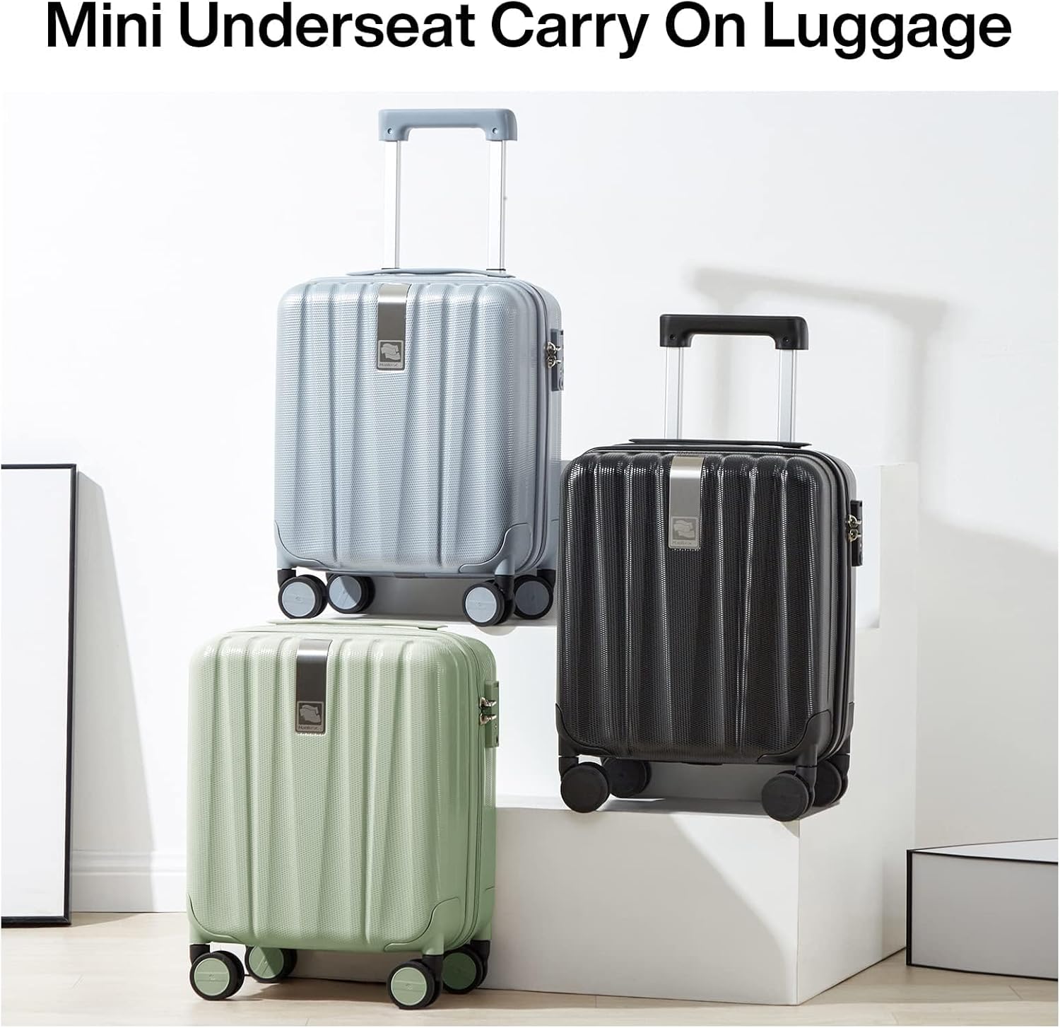 - 【FITS UNDERSEAT】This suitcase fits under most airline seats for easy access to belongings en route. Including wheels and handles(can ont expandable),Underseat 14-Inch:L12.4 x W8.46 x H15.59", 23L, 6.1LB, mini underseat carry on luggage airline approved & can fit in the overhead bin.This suitcase can also be a great wedding gift and vacations,birthday gifts and christmas gifts.