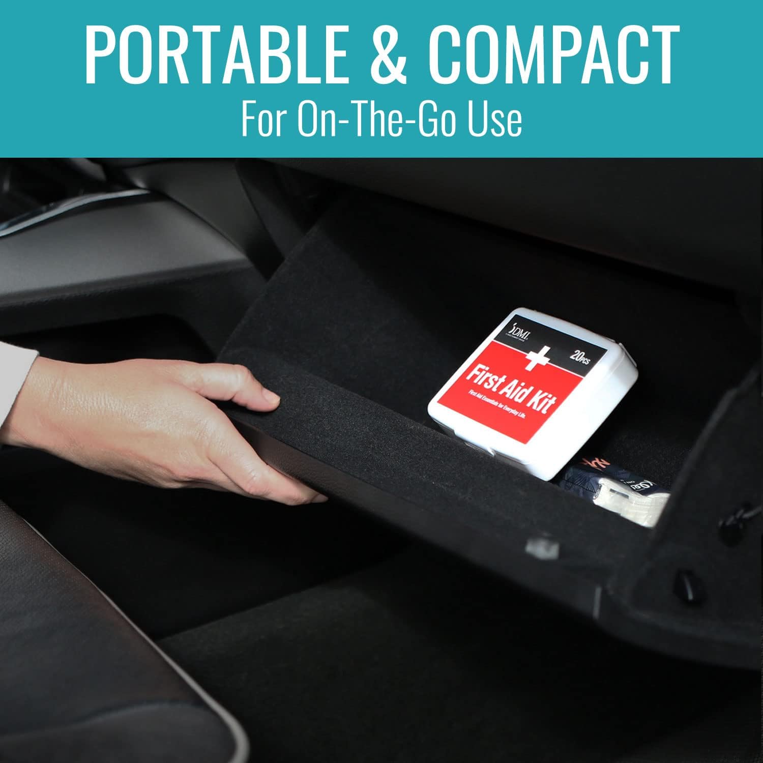 - The first aid kit is small, portable and includes 20-pieces, making it perfect for your car, travel, bookbag, carry-on luggage, desk drawer, handbag, and more!