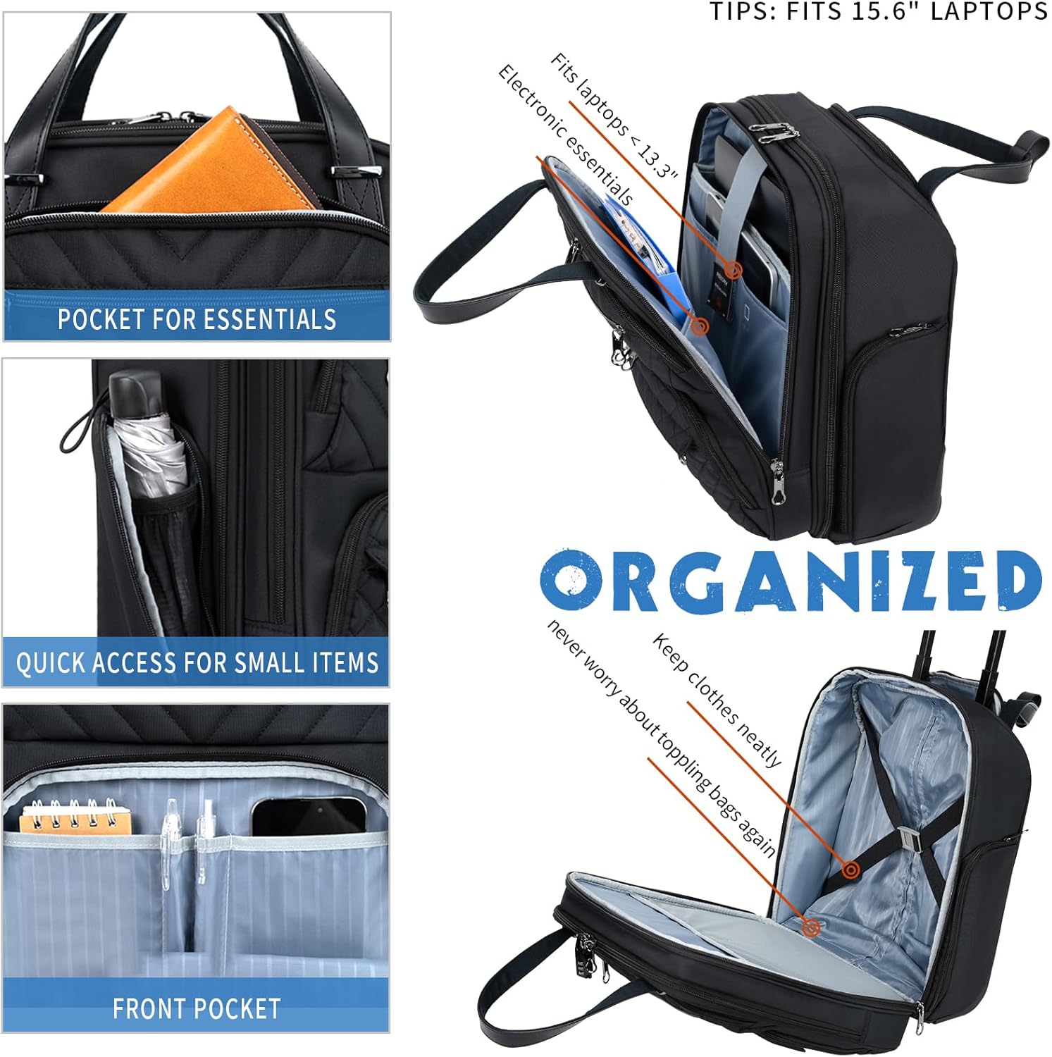 - HASSLE-FREE TRAVEL: Top with sturdy carry handle for easy lifting. Back with a smart Sleeve allows the bag to be placed over the handle of most upright luggage pieces.