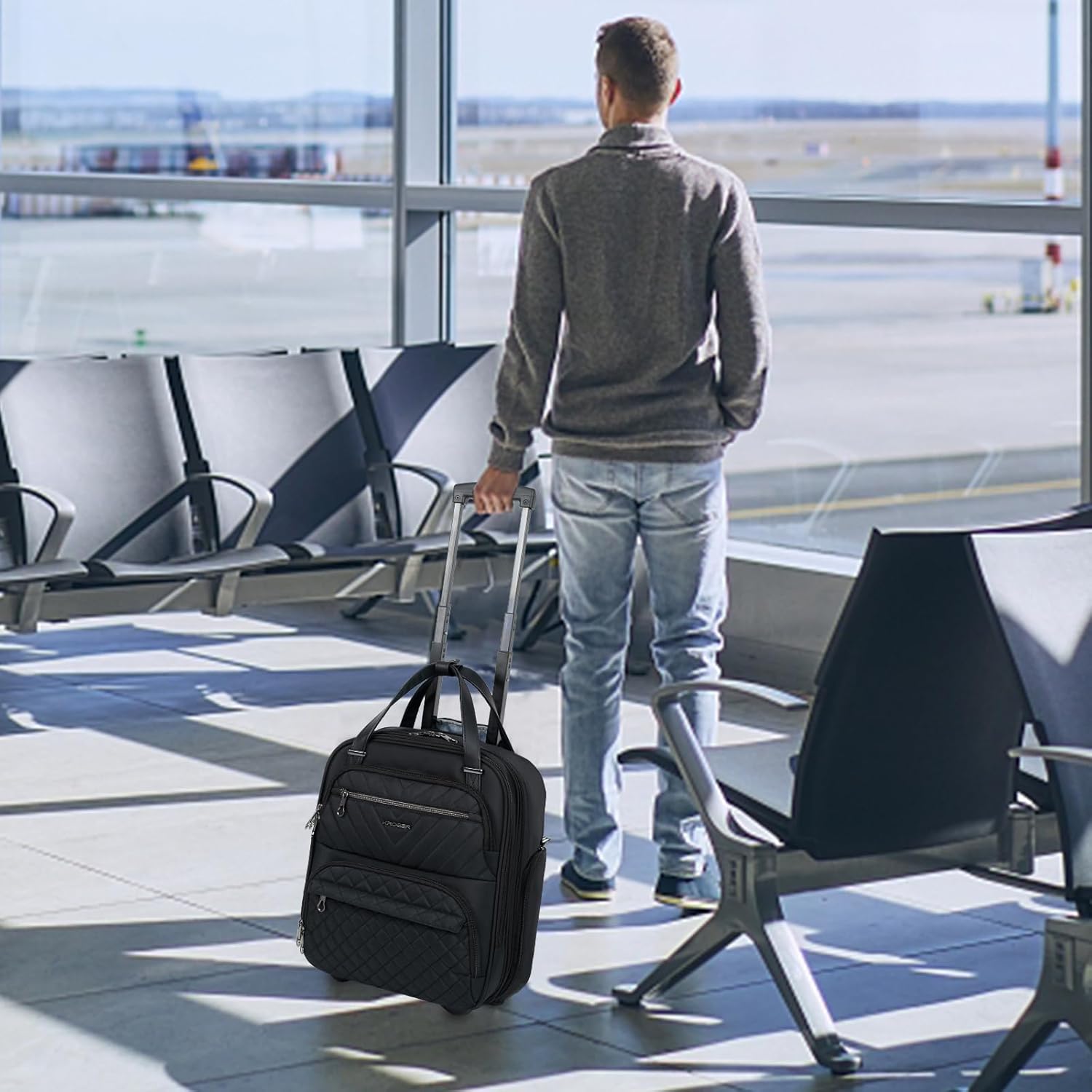 KROSER Carry On Underseat Multi-functional, 16-inch Underseater Lightweight Overnight Suitcase for Men Women, Black