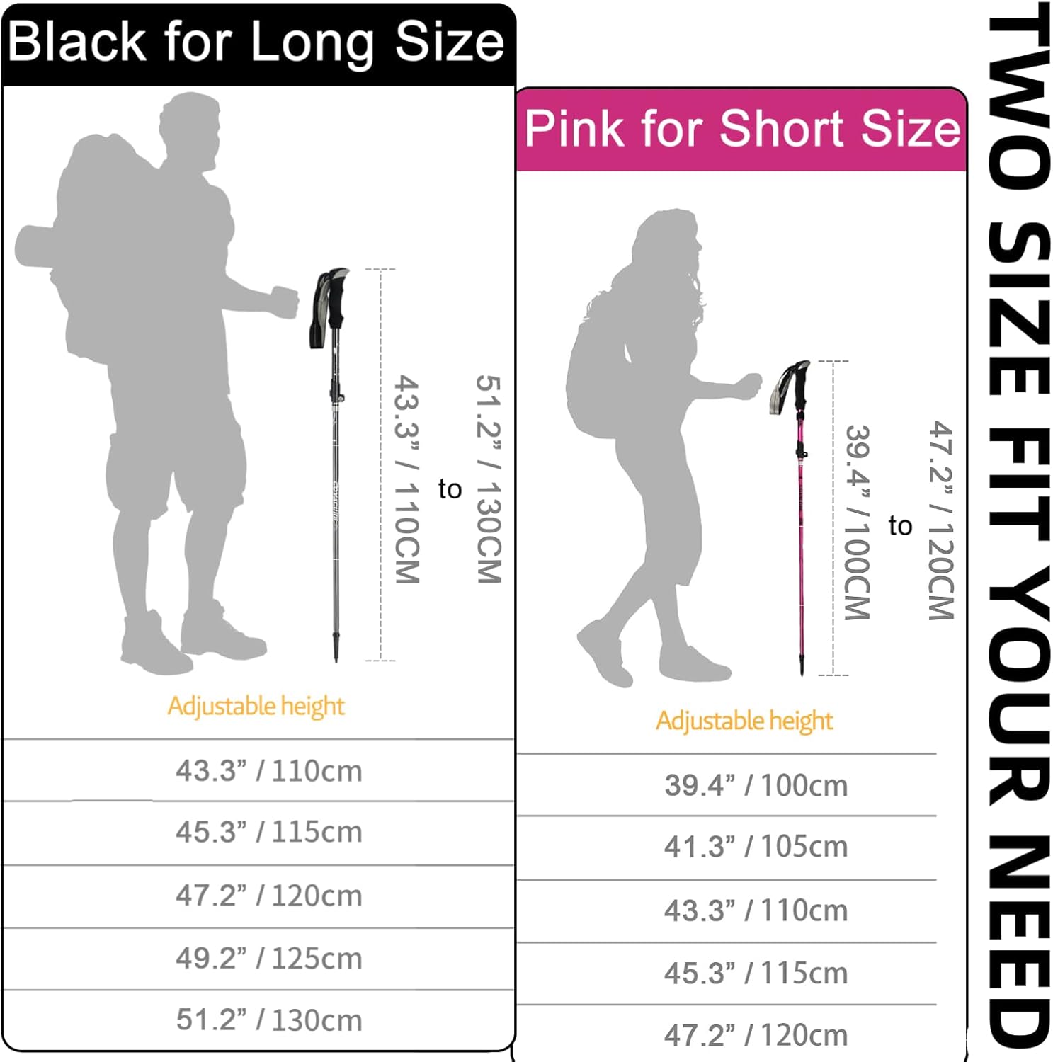 - 【Upgraded Tri-fold Trekking Poles】 Covacure Hiking poles provids telescopic and foldable tri-fold design. So that you can freely adjust the lenght from 43.3"/110cm to 51.2"/130cm to fit your height comfortably after easy installing. What's more, they are easy to be folding down less than 14"/35.5cm to store in your backpack, luggage cases, or duffel bags.