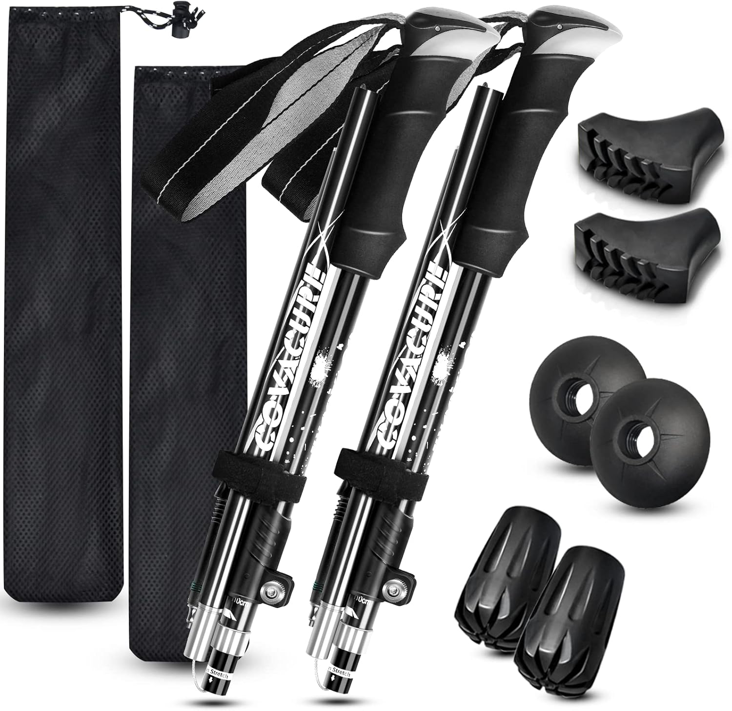 Covacure Hiking Poles Collapsible Trekking Poles - Aluminum Alloy 7075 Walking Sticks for Hiking with Telescopic & Foldable Tri-fold Design Hiking Gear for Women Men, Hiking, Camping, Climbing
