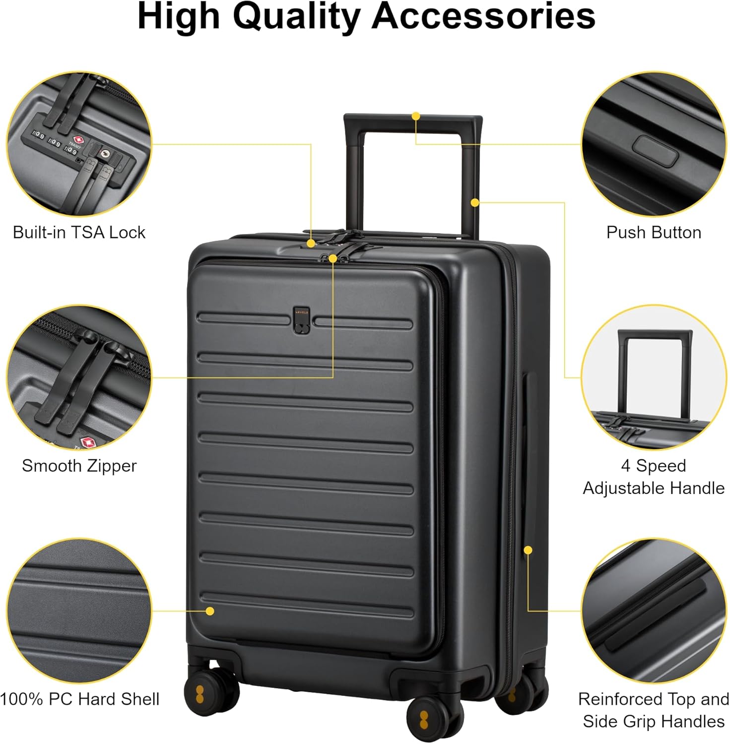 - Front Opening Pocket: The carry on luggage can fit in 15.6 inch laptop, which also provides quick access to documents and other electronic products that you want to keep for ready use