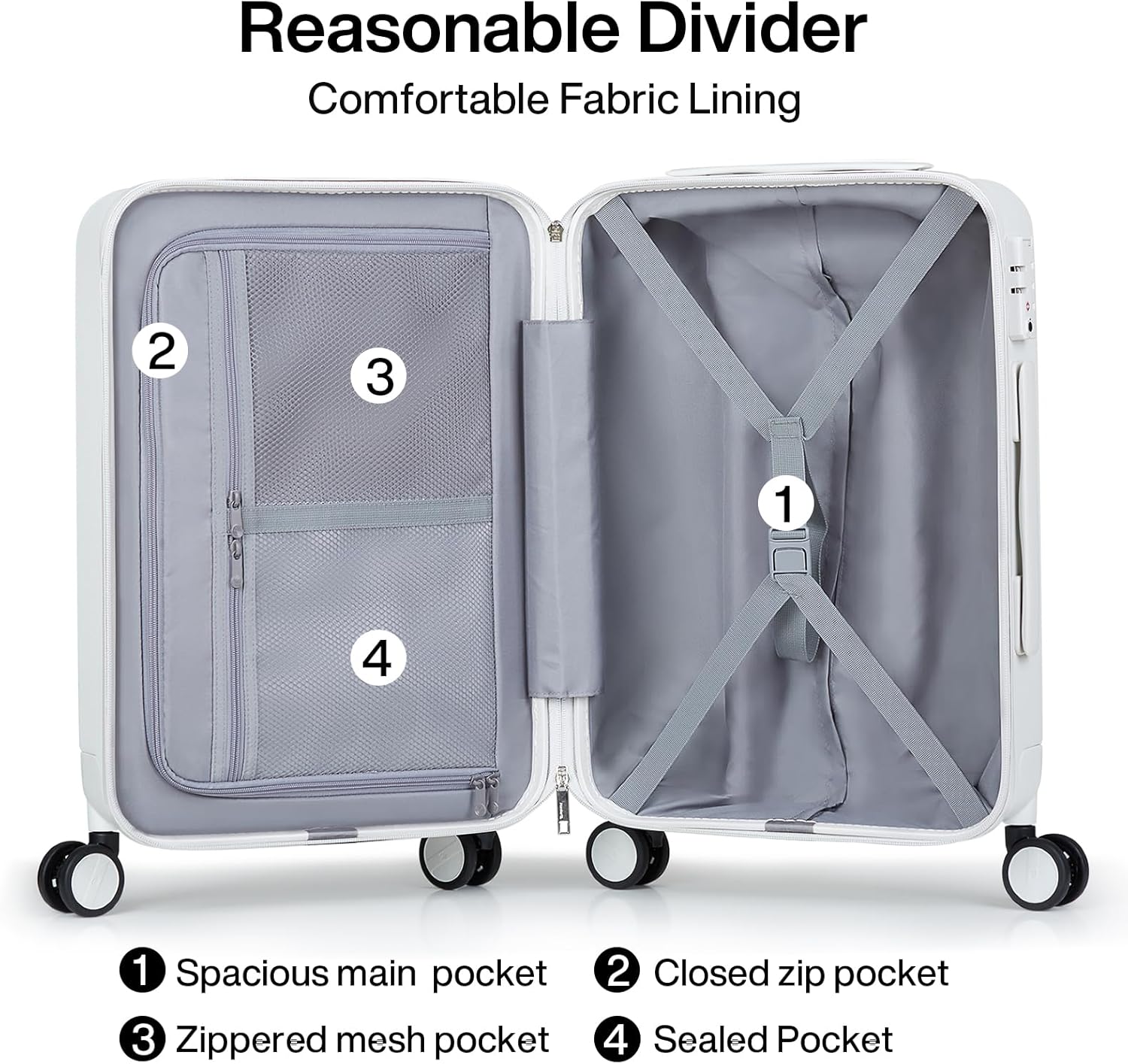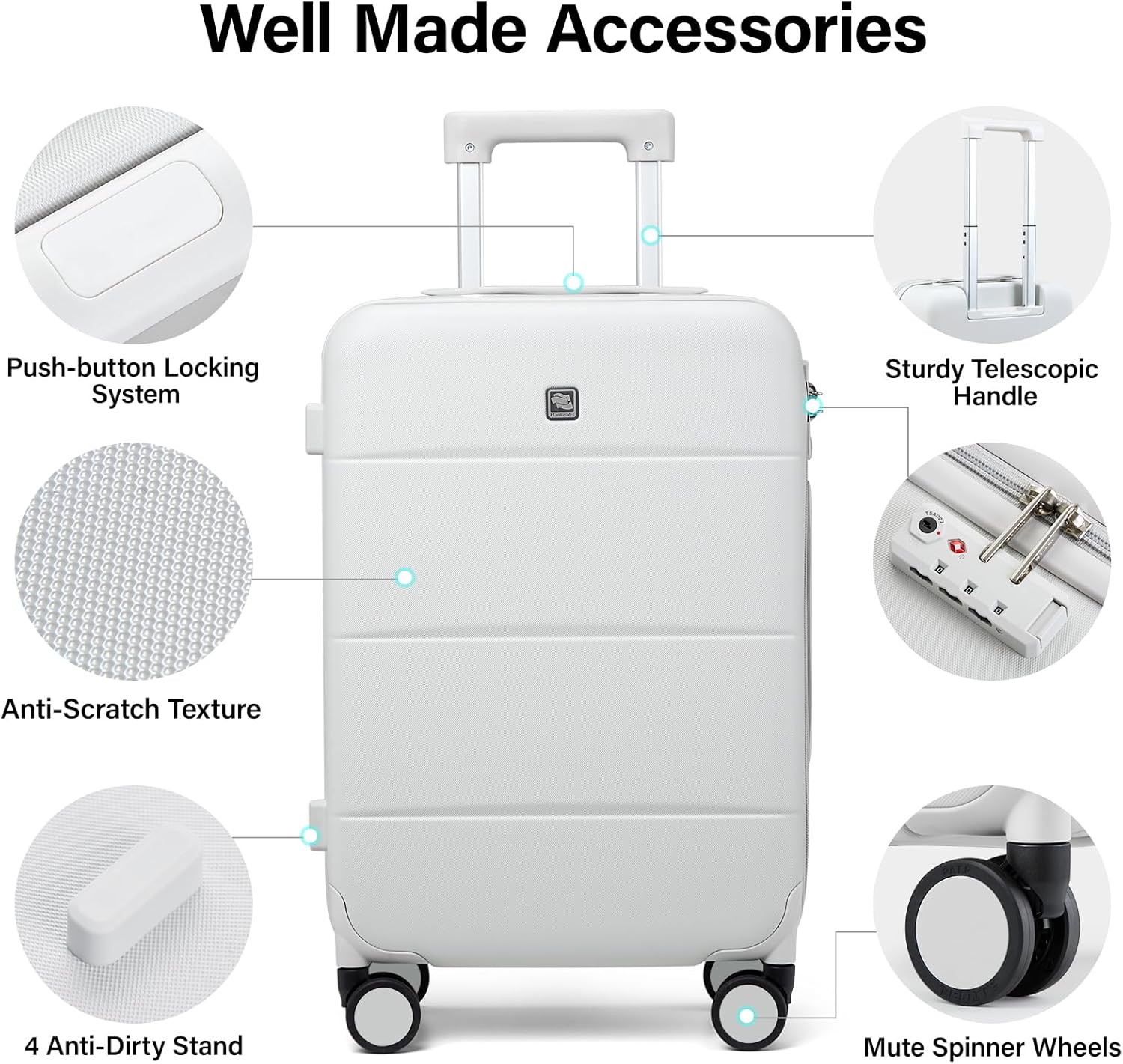 Hanke 20 Inch Carry On Luggage 22x14x9 Airline Approved PC Hard Shell Suitcases with Wheels TSA Luggage for Women Men Lightweight Travel Luggage(Smoke White)