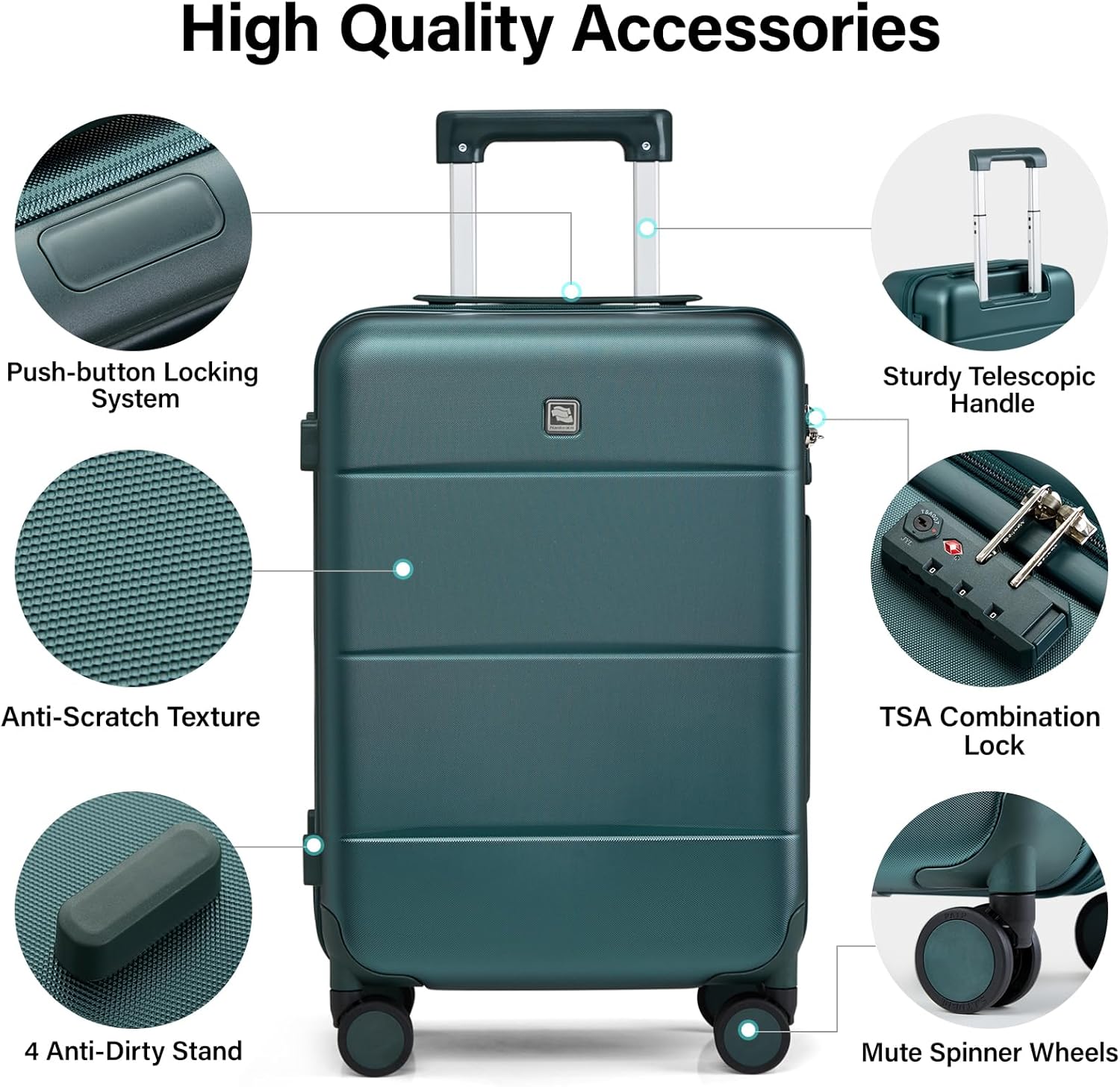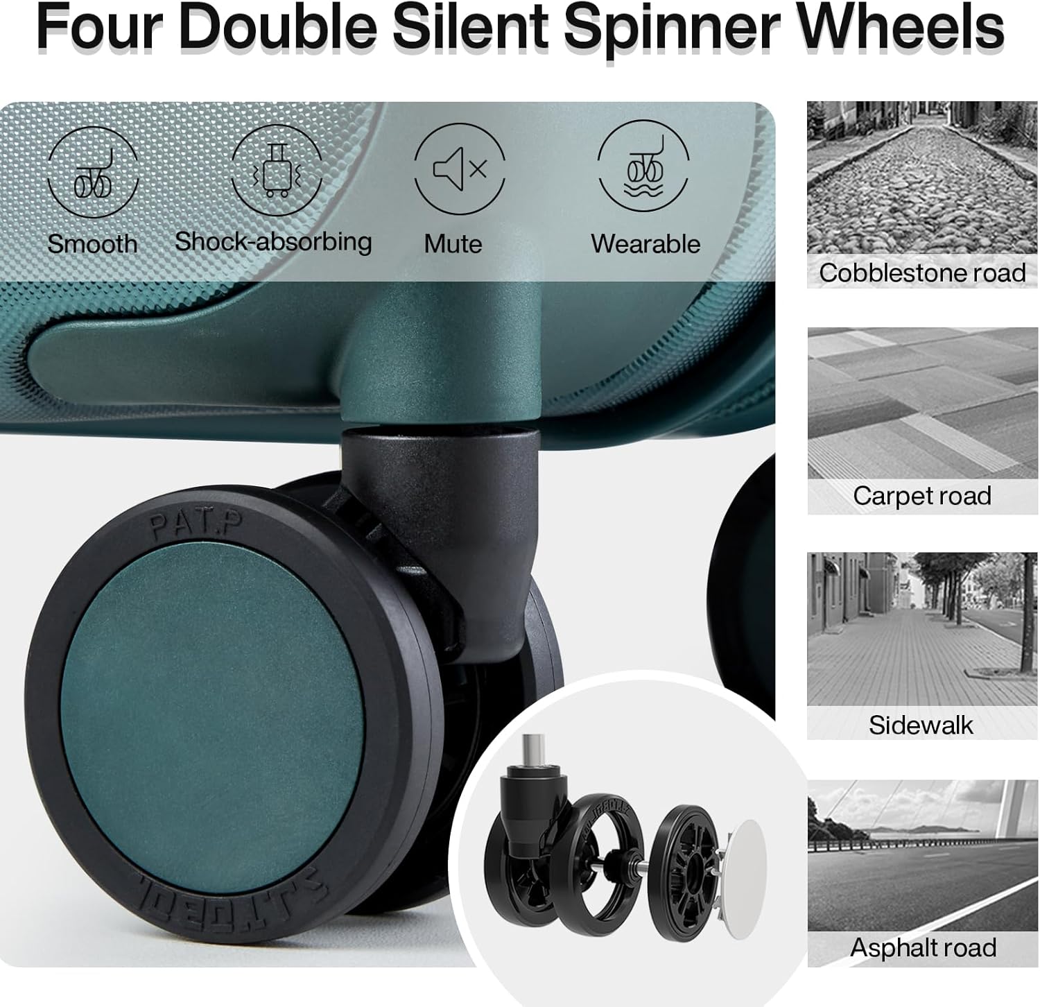 - 【Durable Spinner Wheels 】 Suitecase with spinner wheels for upright 360º mobility for free-weight rolling, it is composed of precision shaft center and thickened TPE wheel skin, which is very wear-resistant,quieter and has strong bearing capacity, It is applicable to different roads such as cobblestone road and carpet road.