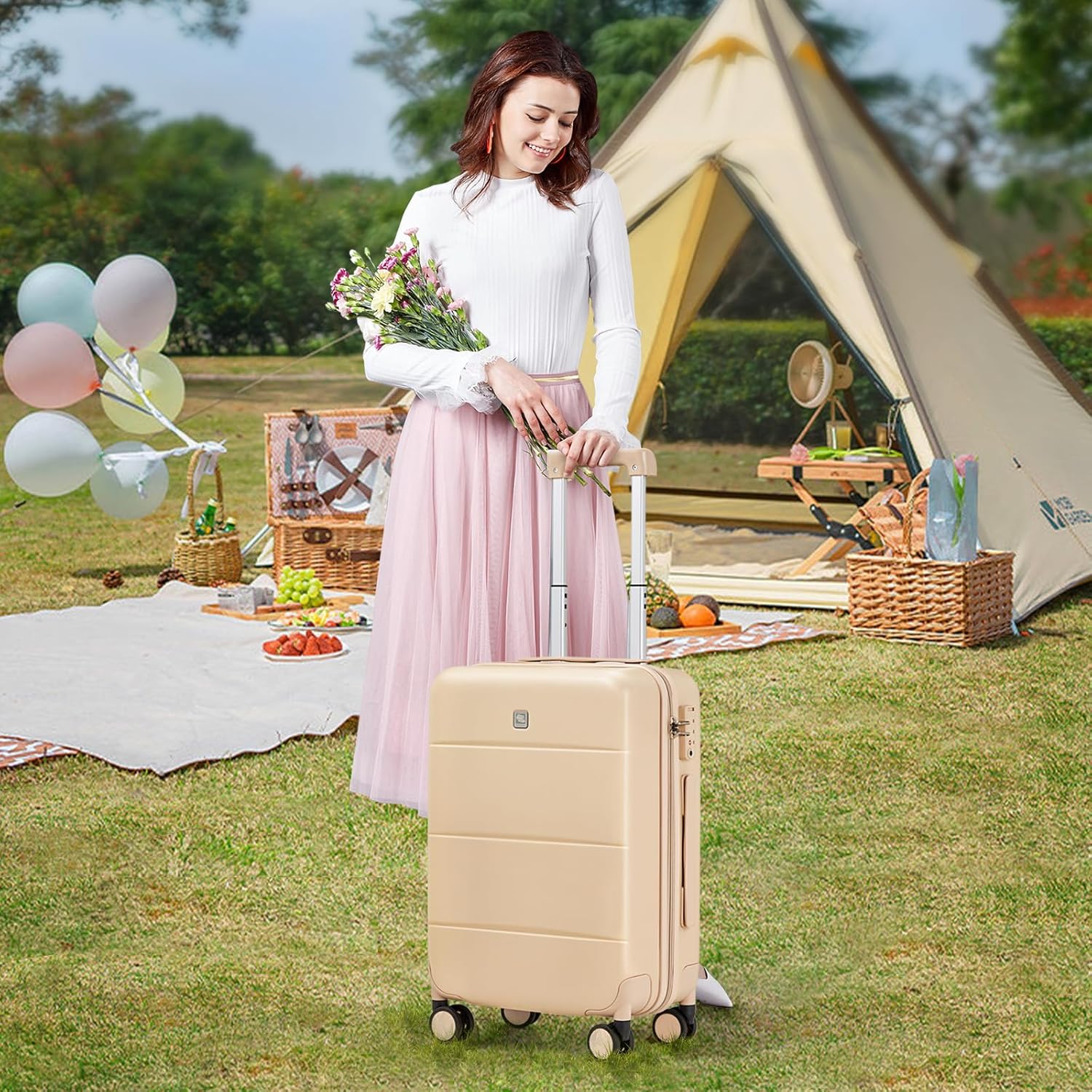 Hanke 20 Inch Carry On Luggage 22x14x9 Airline Approved PC Hard Shell Suitcases with Wheels TSA Luggage for Women Men Lightweight Travel Luggage(Cuba Sand)