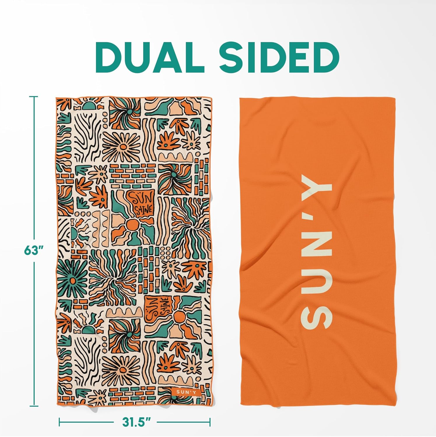- SAND FREE BEACH TOWEL: Our SUN'Y large microfiber beach towels keep the sand where it belongs—under your feet, not in your bag. Featuring innovative microfiber waffle towel technology, these sandless beach towels effortlessly repel sand, ensuring a hassle-free beach experience.