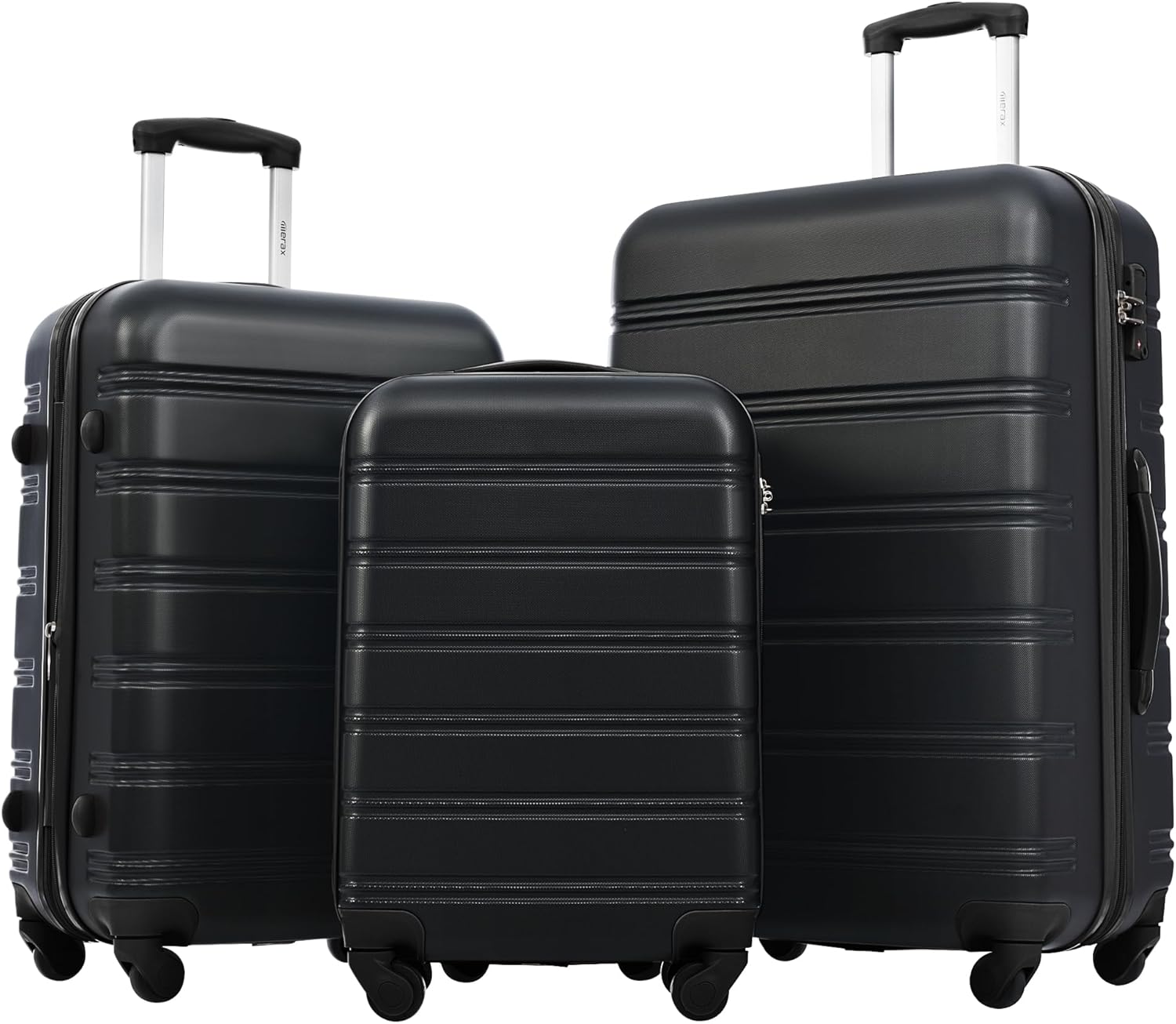 Merax Luggage Sets of 3 Piece Carry on Suitcase Airline Approved,Hard Case Expandable Spinner Wheels (Black)