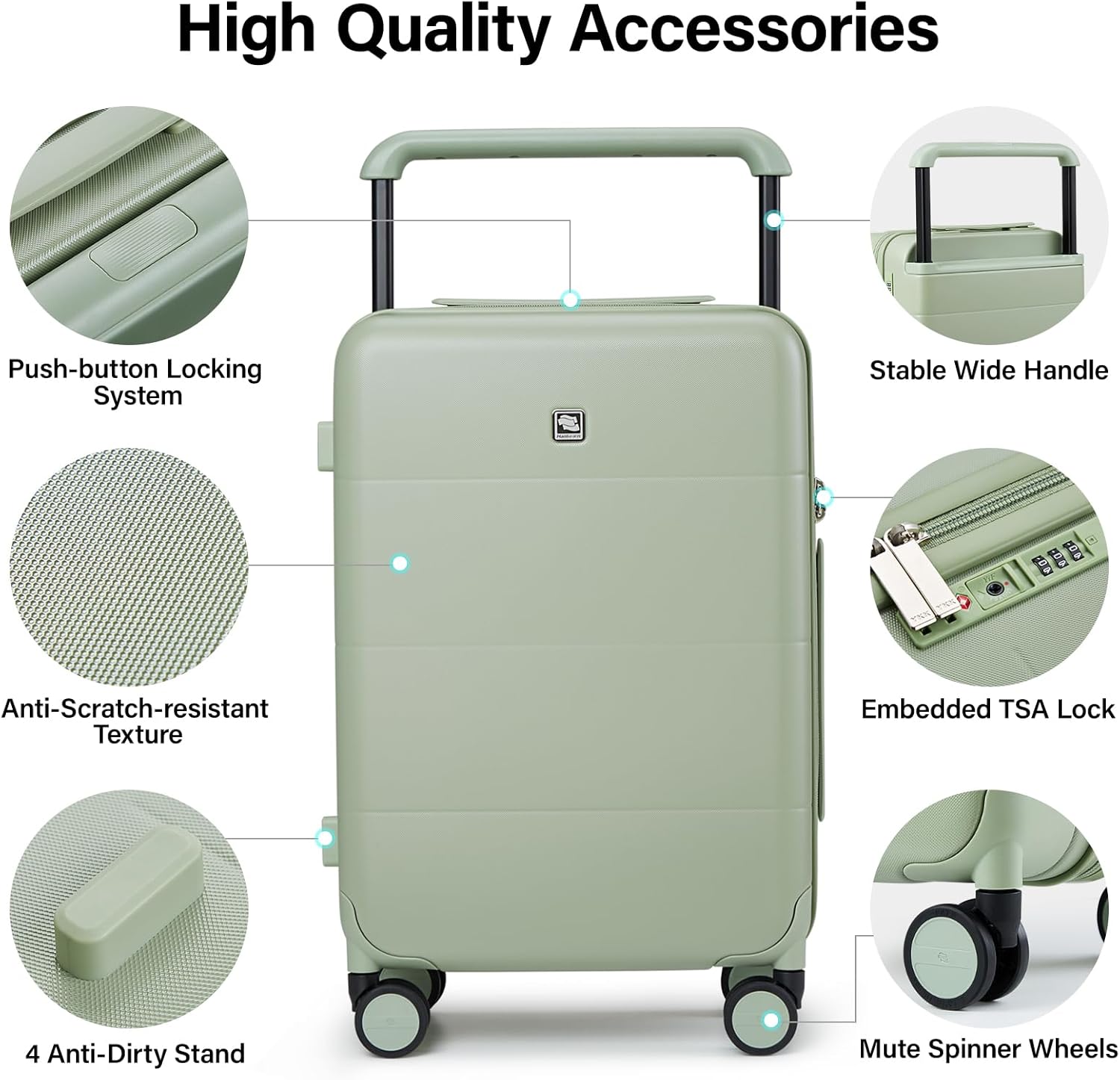Hanke Carry On Luggage 22x14x9 Airline Approved Spinner Wheels TSA Luggage with Wide Handle Hard Shell Suitcases Lightweight Travel Luggage Women Men(Bamboo Green)