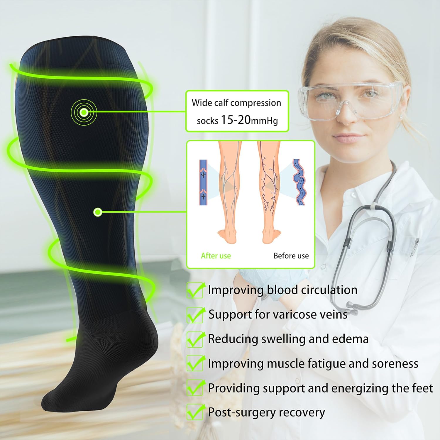 LEVSOX Wide Calf Compression Socks for Women&Men Plus Size 15-20mmHg Knee High Large Support Stockings for Circulation