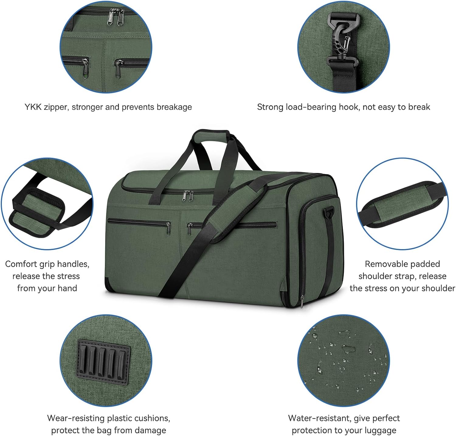 Bukere Garment Bags for Travel, Large Convertible Garment Duffel Bag for Men Women, Shoe Compartment, 2 in 1 Hanging Dress Suitcase Suit Travel Bags