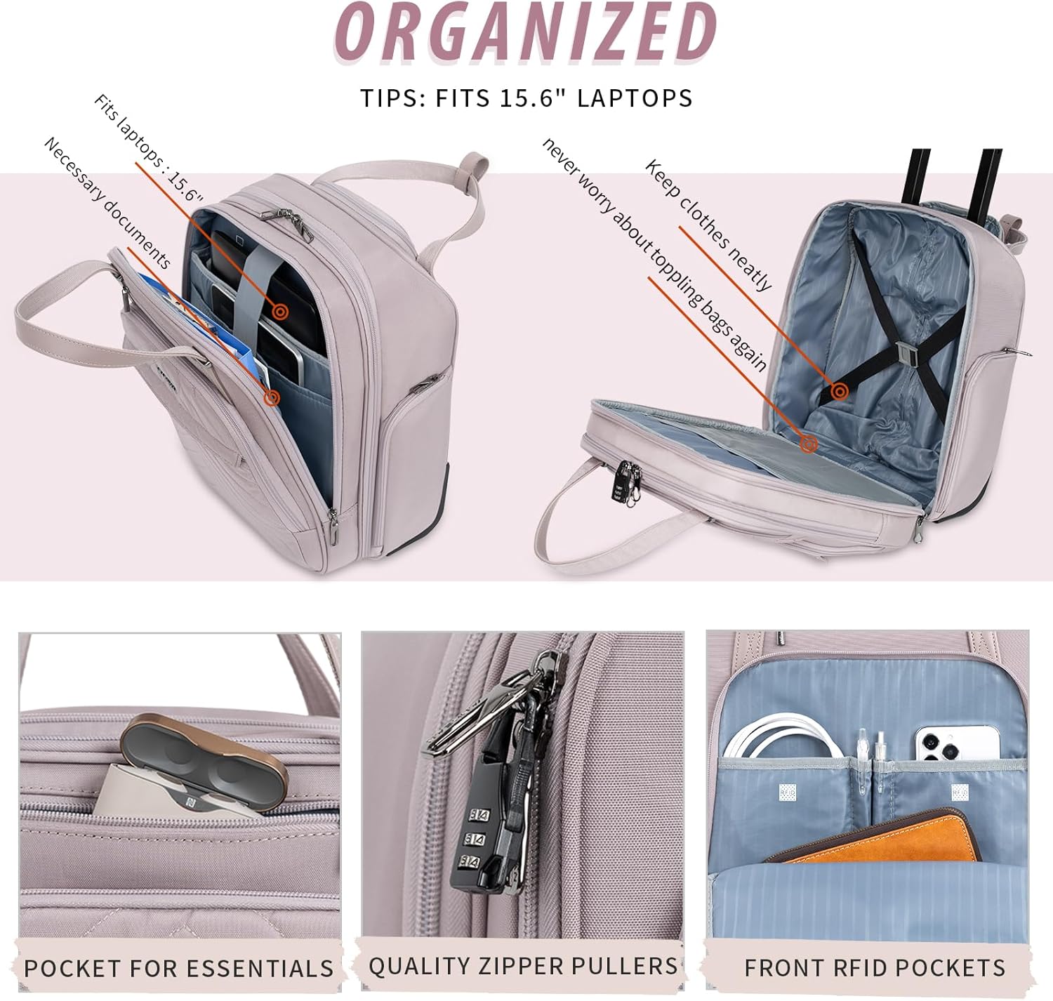 - DUAL SECURITY: Anti-theft design frequency identification blocking technology to ensure the security of credit/debit card information. What’s more,this carry on roller bag comes with an extra zipper lock to effectively prevent theft.