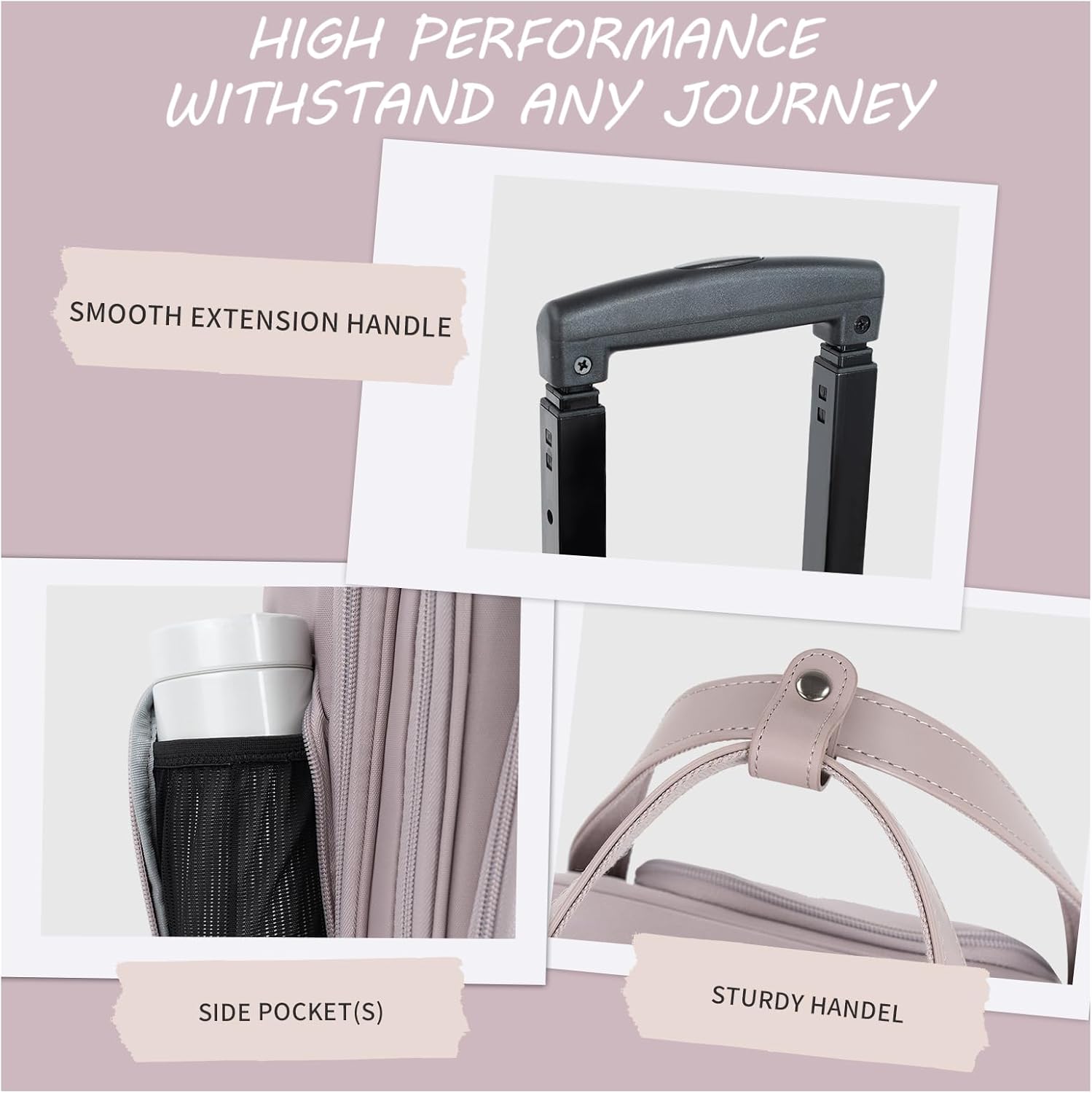 VANKEAN Carry On Underseat 16-inch Multi-functional Underseater Lightweight Overnight Suitcase with Wheels, Roller Case for Women Travel Business, Light Dusty Pink