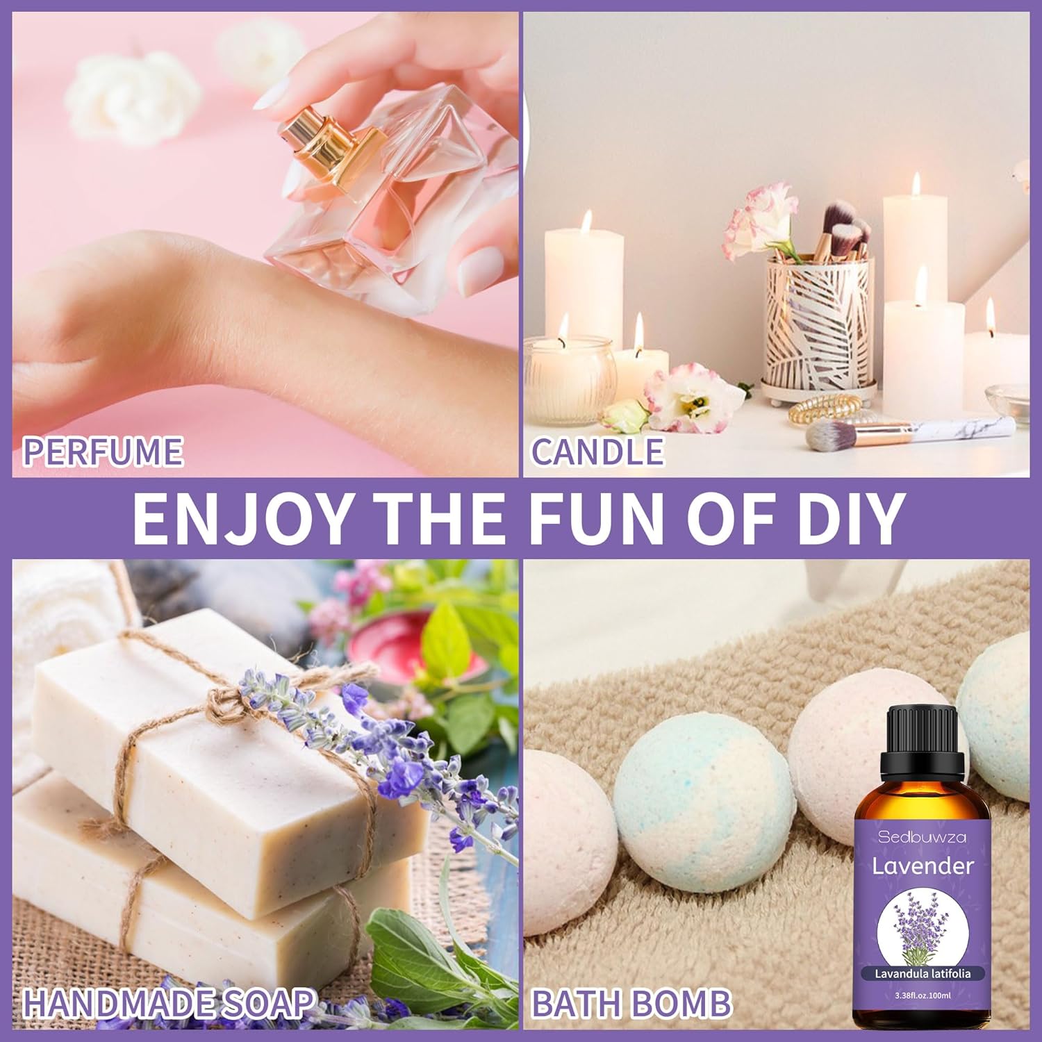 Sedbuwza Lavender Oil Essential Oil, 100% Pure and Natural Premium Lavender Fragrance Oil with Premium Glass Dropper for Diffuser, Aromatherapy Making - 3.38 Fl Oz/100ML