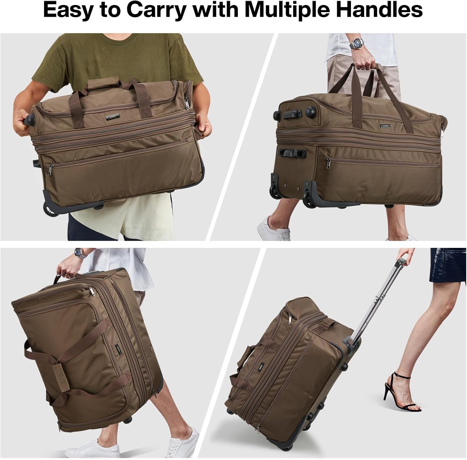 Hanke Large Expandable checked Luggage Suitcases with Wheels Foldable Duffle Bag for Travel suitcase for Women Men Garment Bag(Coffee)